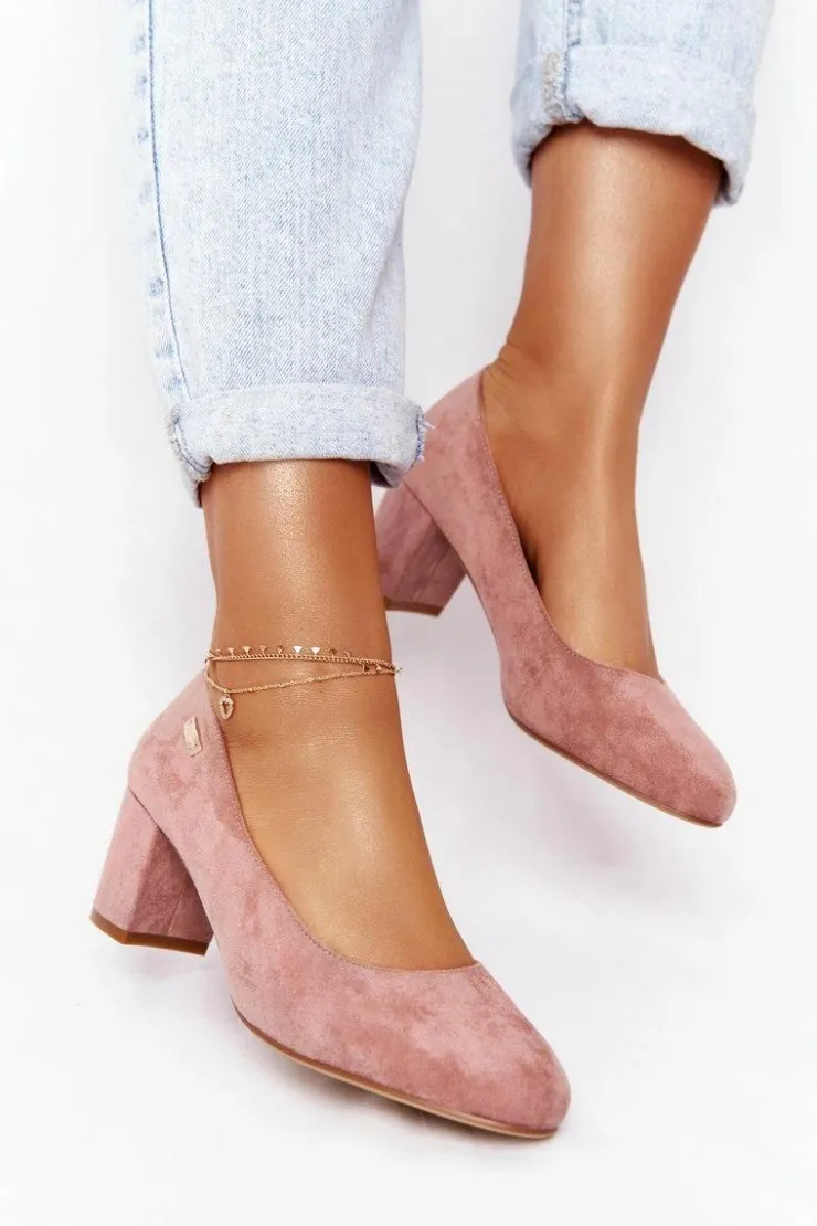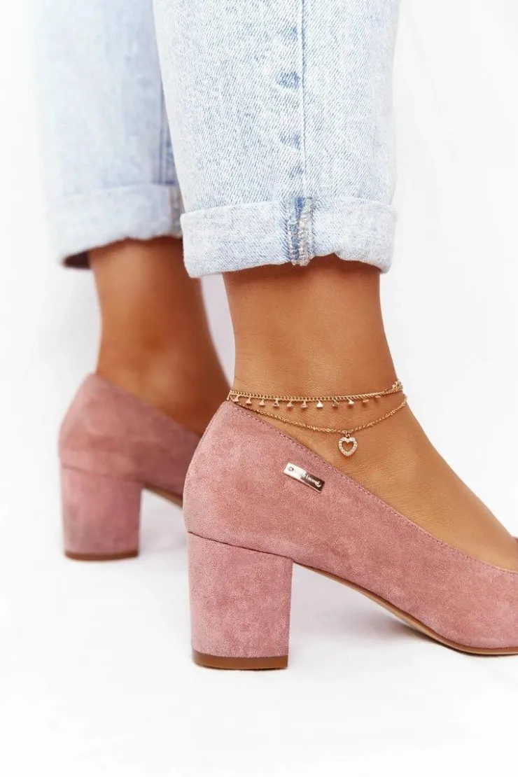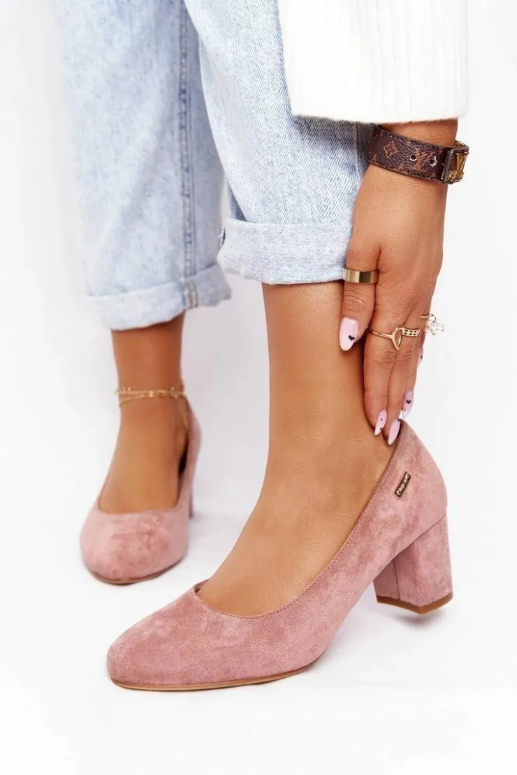 Damskie Buty Sergio Leone Zamszowe Czółenka Na Słupku Sergio Leone PB178 Różowe