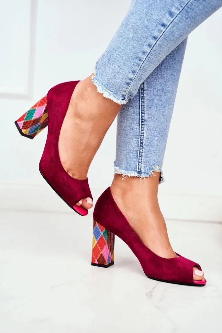 Damskie Buty Sergio Leone Zamszowe Czółenka Sergio Leone PB135 Fuksja