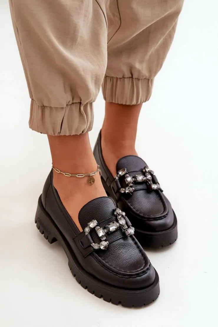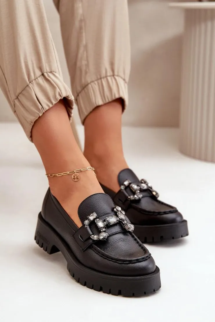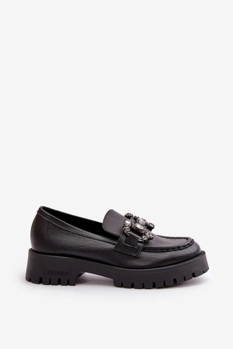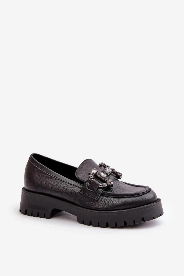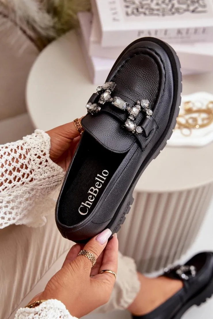 Damskie CheBello Damskie Skórzane Mokasyny Z Ozdobą 4369 Czarne