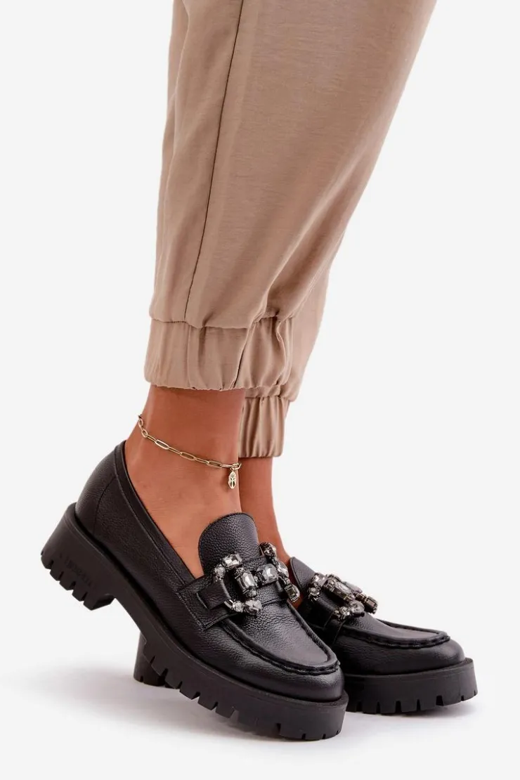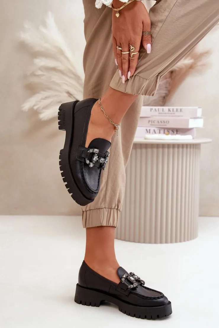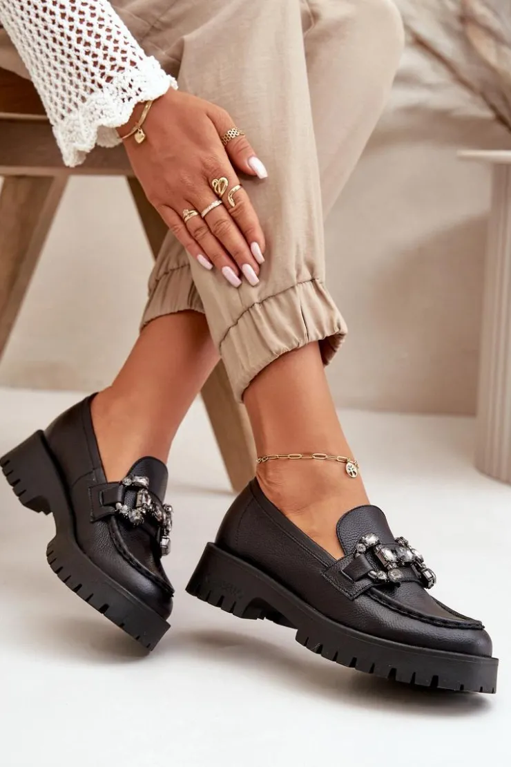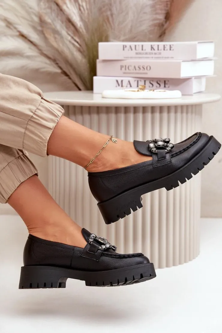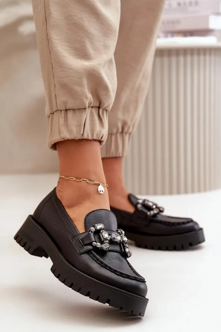 Damskie CheBello Damskie Skórzane Mokasyny Z Ozdobą 4369 Czarne
