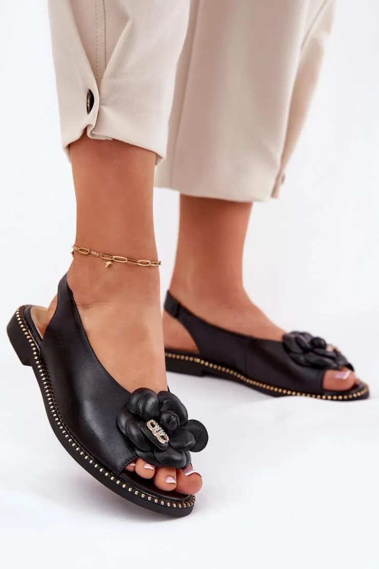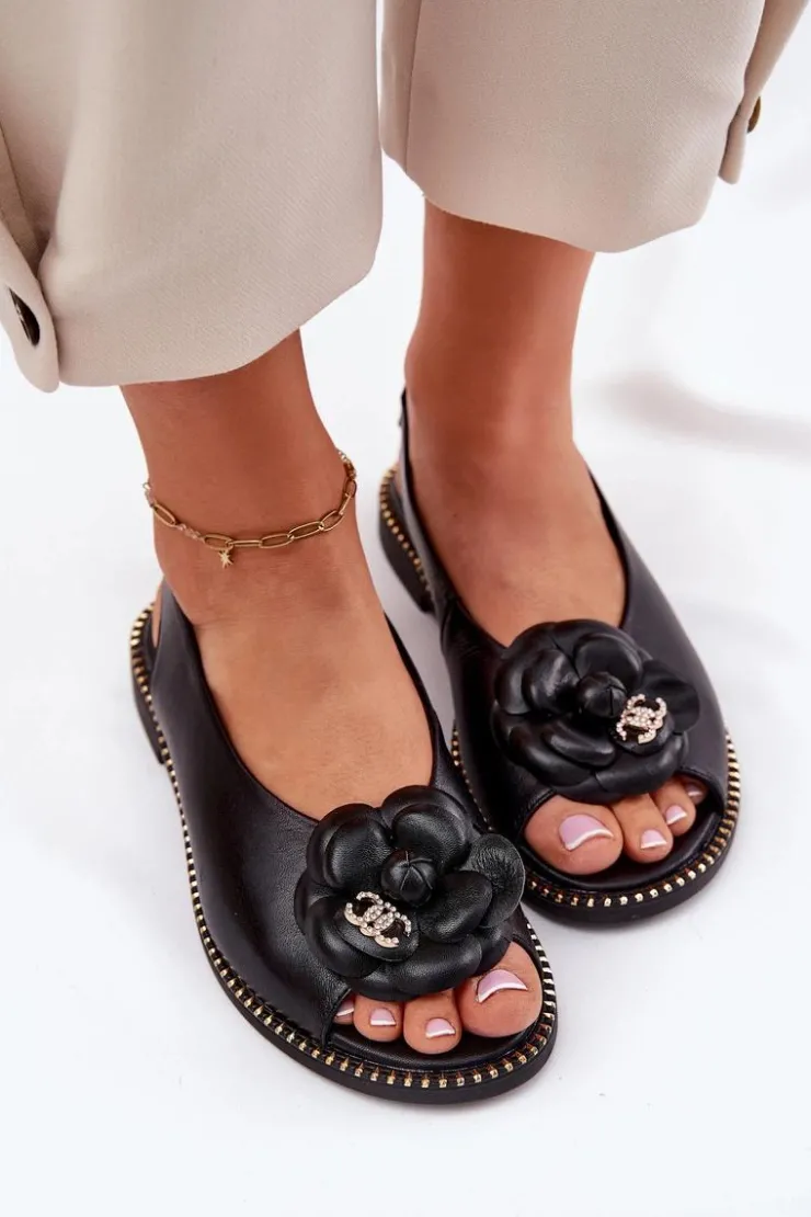 Eleganckie sandały damskie z naturalnej skóry to doskonały wybór na ciepłe dni, łączący styl i komfort. Osadzone na płaskim obcasie, zapewniają wygodę przez cały dzień. Z przodu znajduje się subtelna ozdobna aplikacja, która nadaje wyjątkowego charakteru. Wsuwany fason sprawia, że są łatwe do założenia, a klasyczny design sprawia, że te sandały będą idealnym dodatkiem do wielu letnich stylizacji. Przy wyborze rozmiaru prosimy kierować się tabelą rozmiarów.