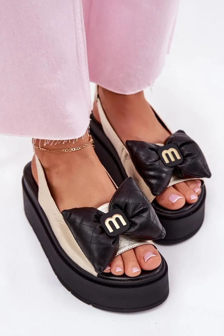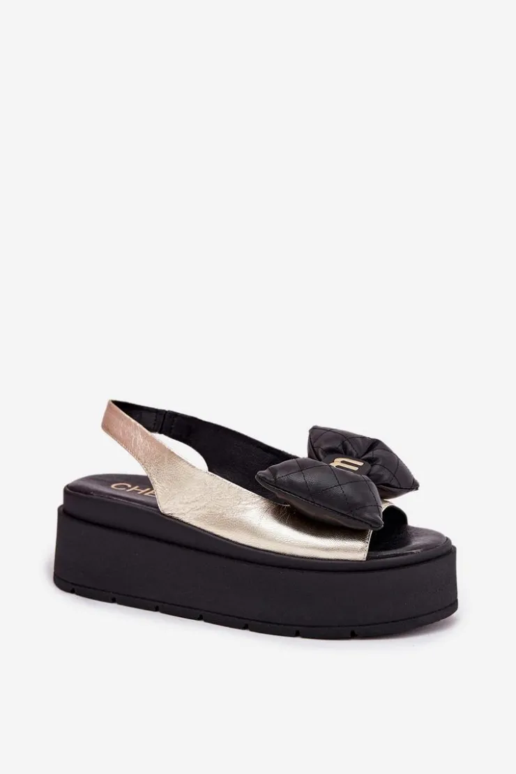 Skórzane sandały damskie od marki Chebello, osadzone na masywnej platformie, to elegancka i stylowa propozycja na ciepłe dni. Z przodu ozdobna kokardka, która dodaje im subtelnej elegancji i kobiecego uroku. Masywna platforma zapewnia komfort przez cały dzień, sprawiając, że sandały te są idealnym wyborem na codzienne wyjścia i specjalne okazje. łączą modny wygląd z funkcjonalnością. Przy wyborze rozmiaru prosimy kierować się tabelą rozmiarów.
