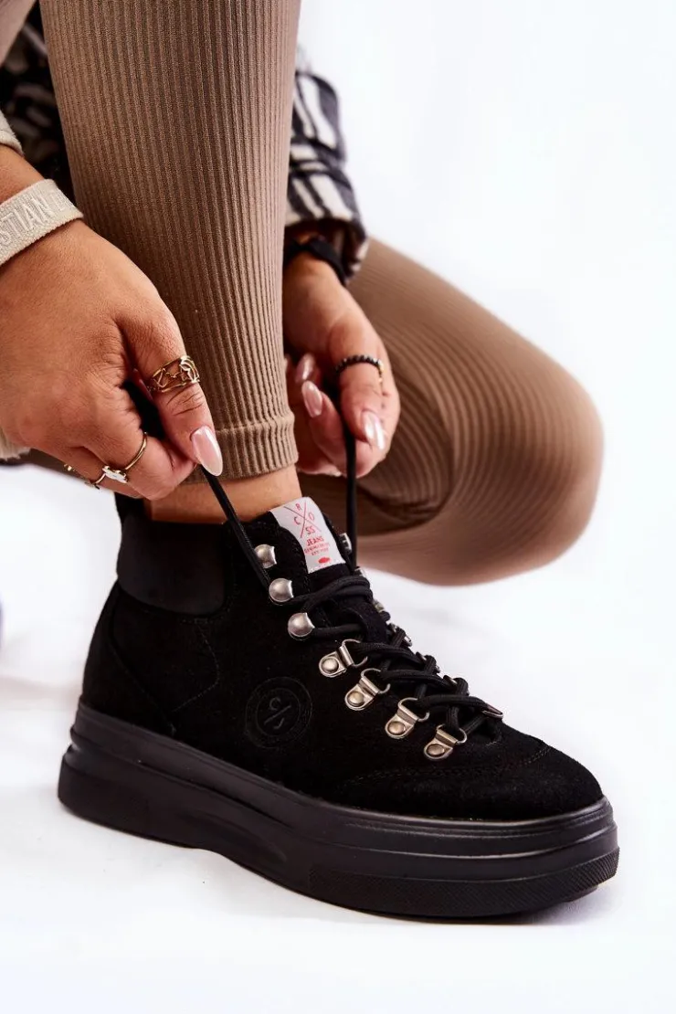 Botki w stylu traperów idealnie sprawdzą się na chłodniejsze dni! Zostały wykonane z połączenia imitacji zamszu i materiału syntetycznego. Posiadają klasyczne sznurowanie na okrągłe sznurówki. Model z dodatkowo usztywnianym zapiętkiem. Trapery osadzono na grubej, masywnej platformie. Doskonale sprawdzą się w jesiennych stylizacjach. Musisz je mieć! Przy wyborze rozmiaru prosimy sugerować się tabelą rozmiarów.