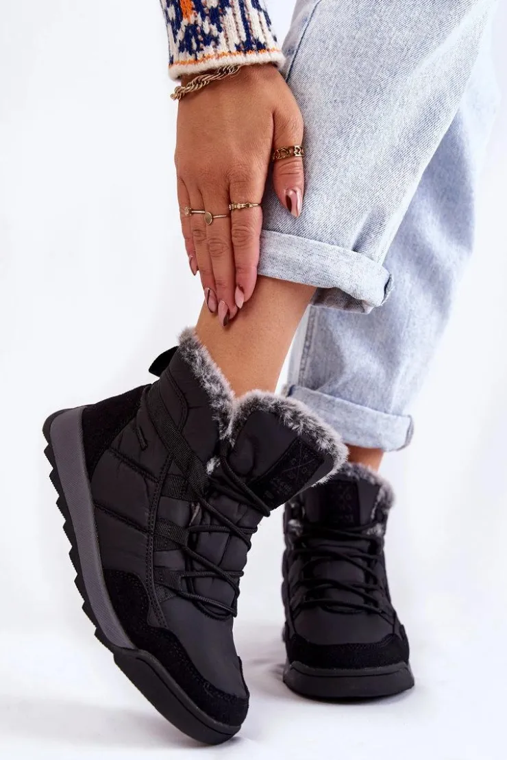 Damskie Cross Jeans Damskie Ocieplane Śniegowce KK2R4016C Czarne