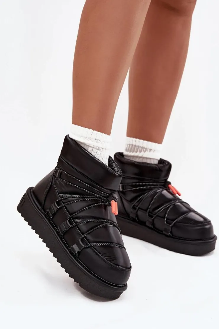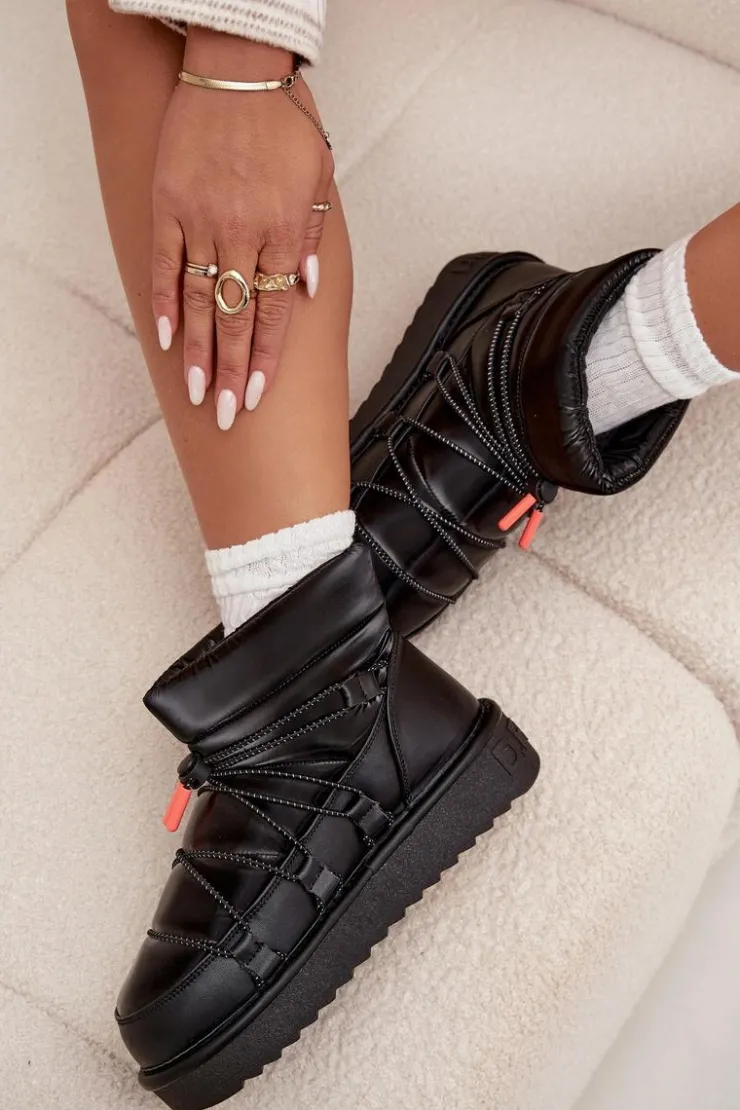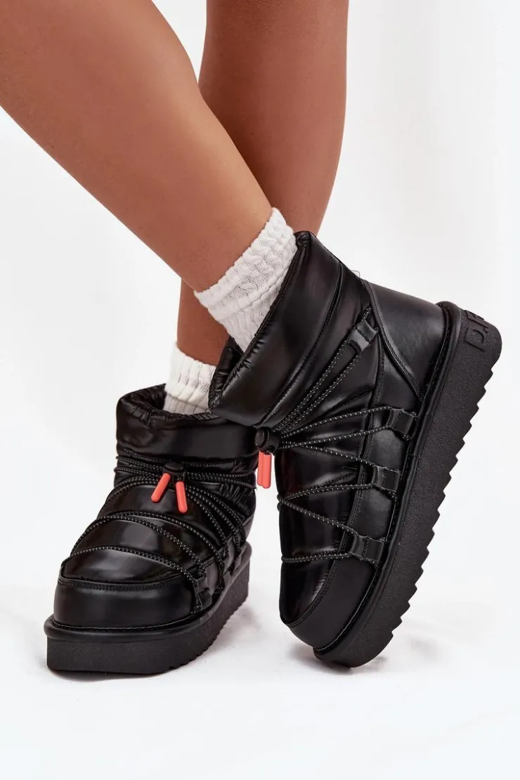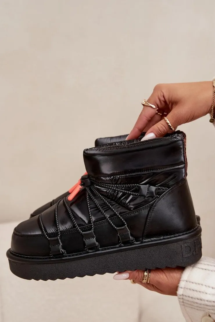 Śniegowce damskie marki D.Franklin. Wykonane z wytrzymałego nylonu i eko skóry, skutecznie chronią przed chłodem i wilgocią, jednocześnie prezentując się modnie i stylowo. Wnętrze ocieplane miękkim futerkiem zapewnia komfort termiczny i wygodę nawet podczas mroźnej pogody. Model osadzony został na podeszwie z gumowego tworzywa, która gwarantuje stabilność i przyczepność na różnych nawierzchniach. Dodatkowym atutem jest ściągacz z przodu, który umożliwia lepsze dopasowanie i chroni przed przedostawaniem się zimna do wnętrza obuwia. To śniegowce, które sprawdzą się zarówno na co dzień, jak i podczas zimowych wyjazdów.