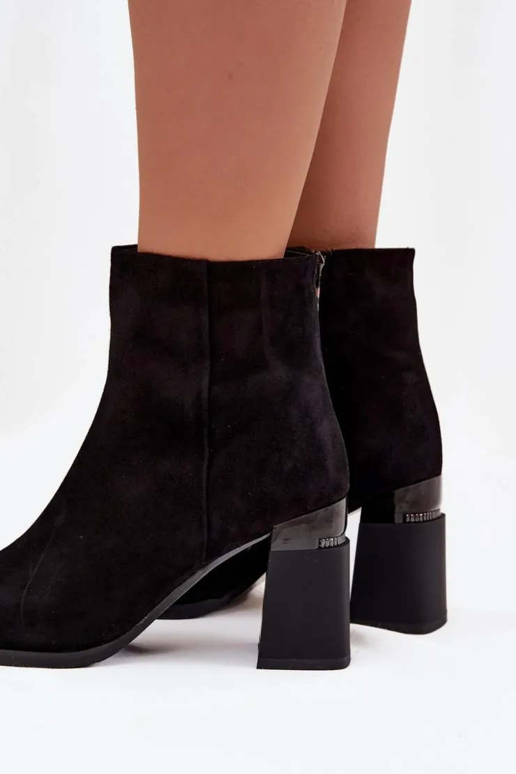 Damskie D&A Botki Damskie Z Naturalnego Zamszu Na Słupku Ocieplane CR52-718 Czarne