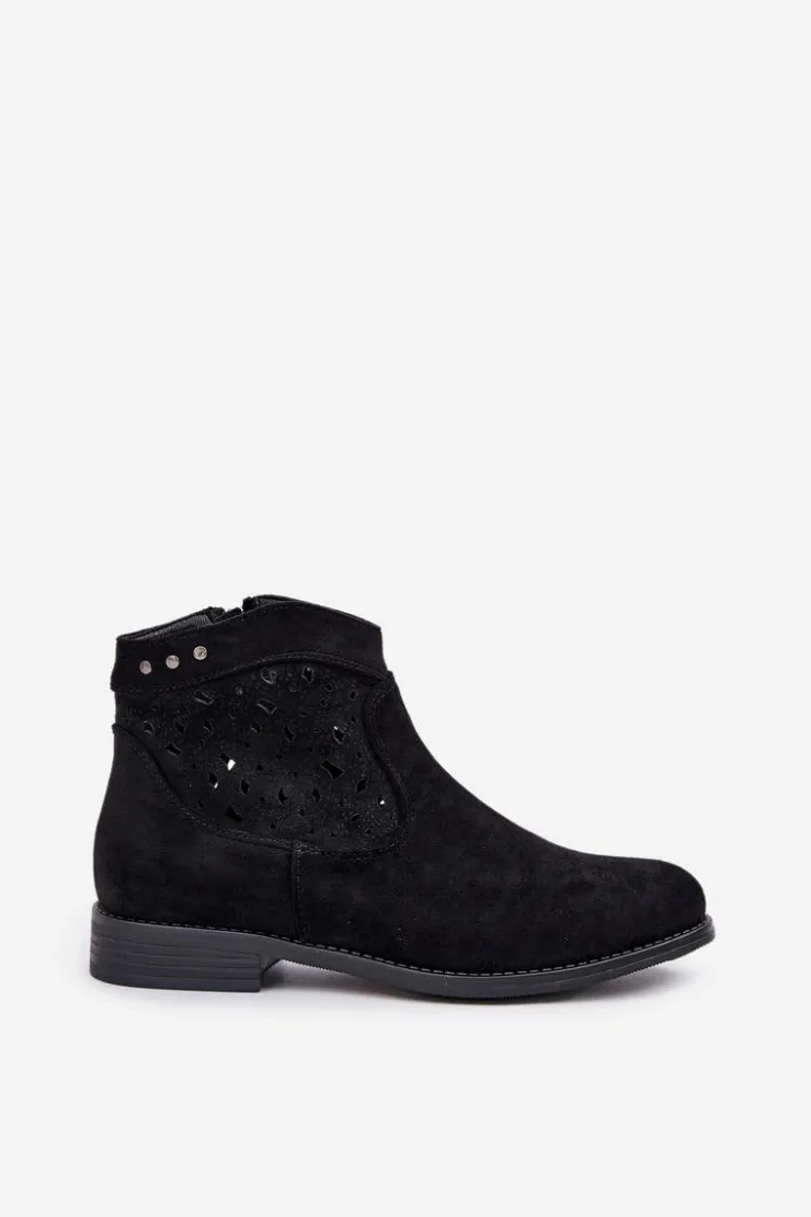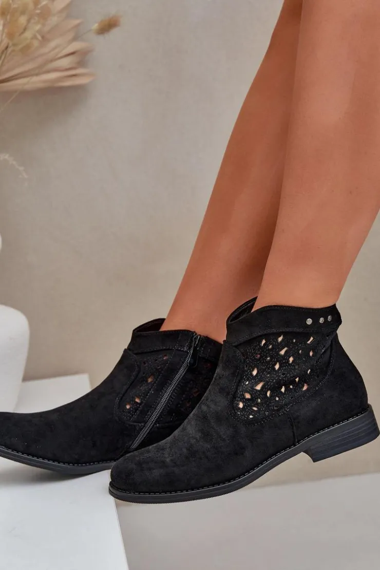 Botki damskie od marki S.Barski, wykonane z eko zamszu, to elegancka i wygodna propozycja na chłodniejsze dni. Osadzone na płaskim obcasie, zapewniają stabilność i komfort przez cały dzień. Zapinane na zamek, co ułatwia ich zakładanie. Zaokrąglone noski dodają im subtelnego charakteru, a ażurowa cholewka nadaje lekkości i nowoczesnego stylu. Te botki to doskonały wybór do codziennych stylizacji! Przy wyborze rozmiaru prosimy sugerować się tabelą rozmiarów.