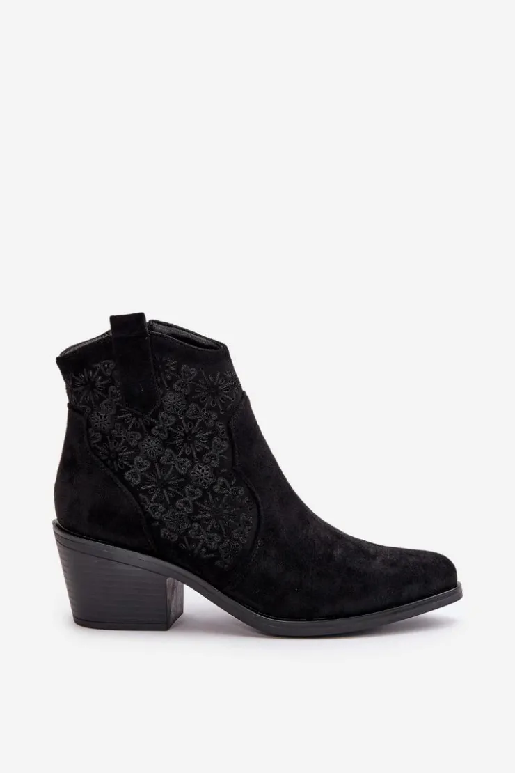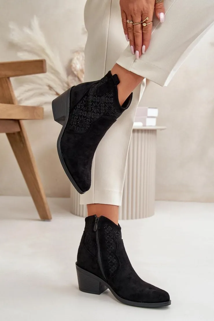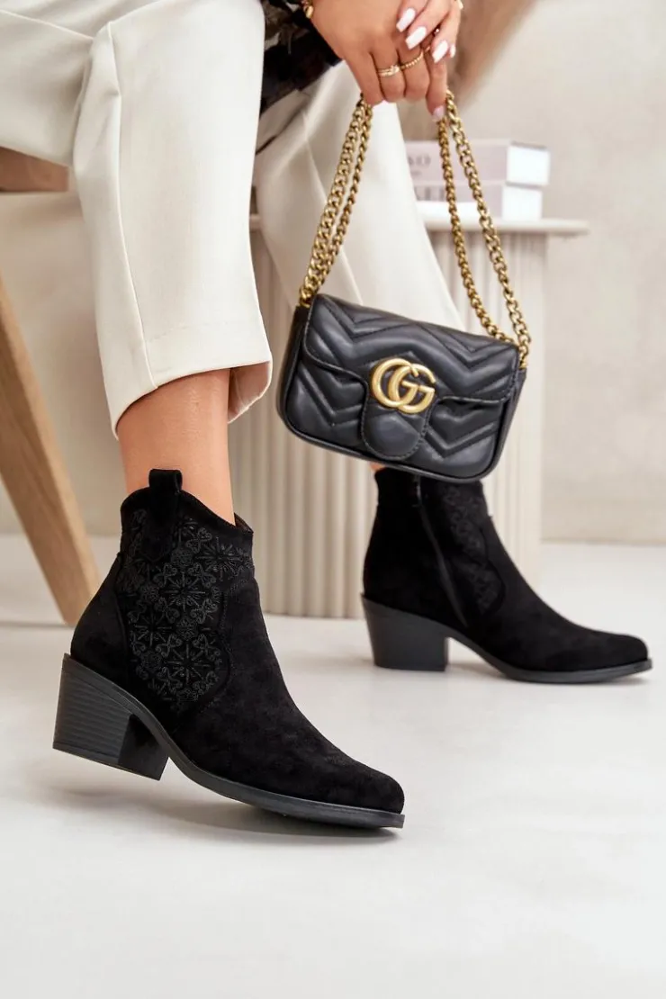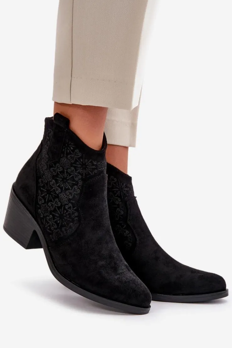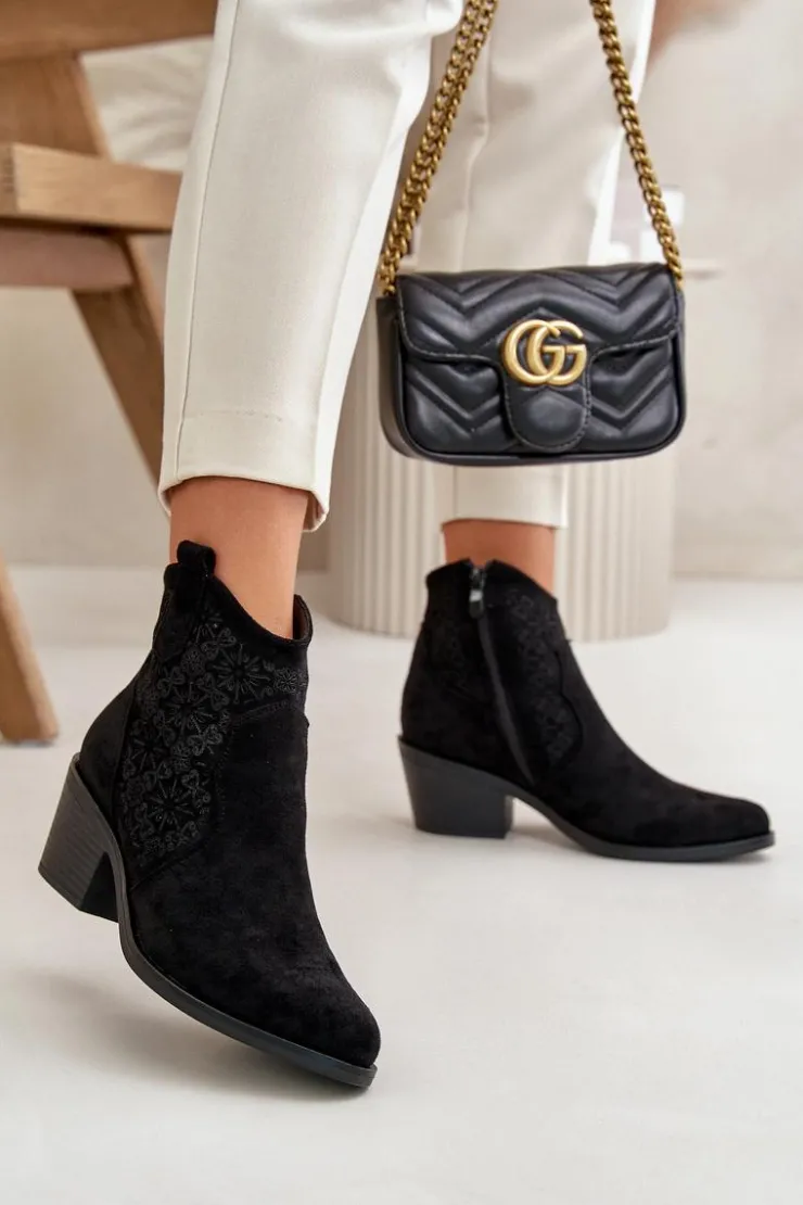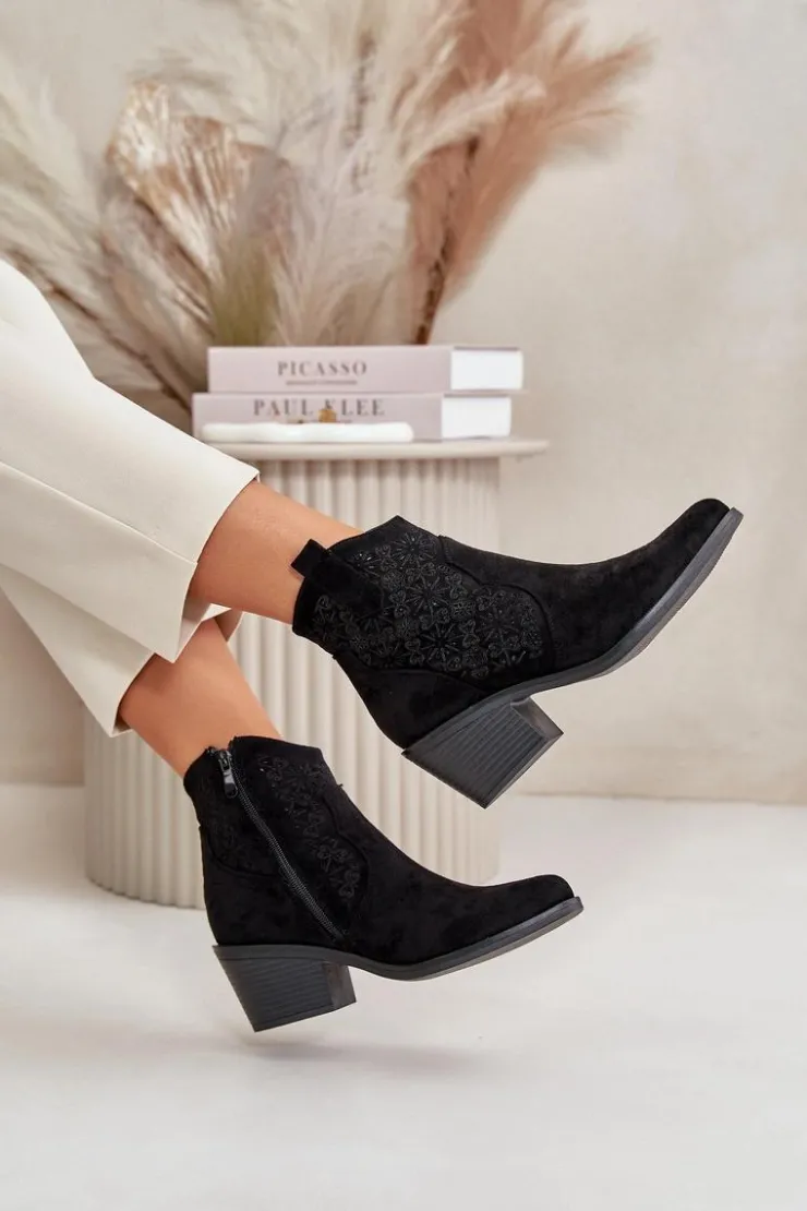 Botki damskie wykonane z miękkiego i przyjemnego w dotyku eko zamszu. Ażurowa cholewka nadaje im lekkości i elegancji, sprawiając, że idealnie nadają się na cieplejsze dni. Osadzone na stabilnym obcasie. Model ten posiada praktyczne zapięcie na zamek, co ułatwia zakładanie i zdejmowanie obuwia. Noski w szpic. Idealne zarówno do casualowych, jak i bardziej eleganckich outfitów. To wszechstronny dodatek do garderoby każdej modnej kobiety. Przy wyborze rozmiaru prosimy sugerować się tabelą rozmiarów.