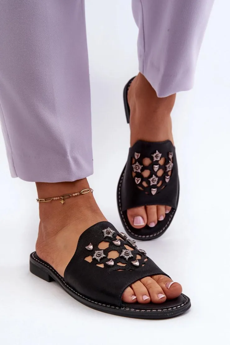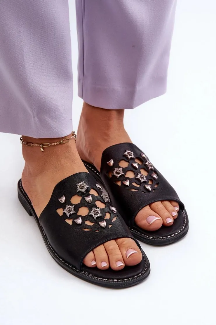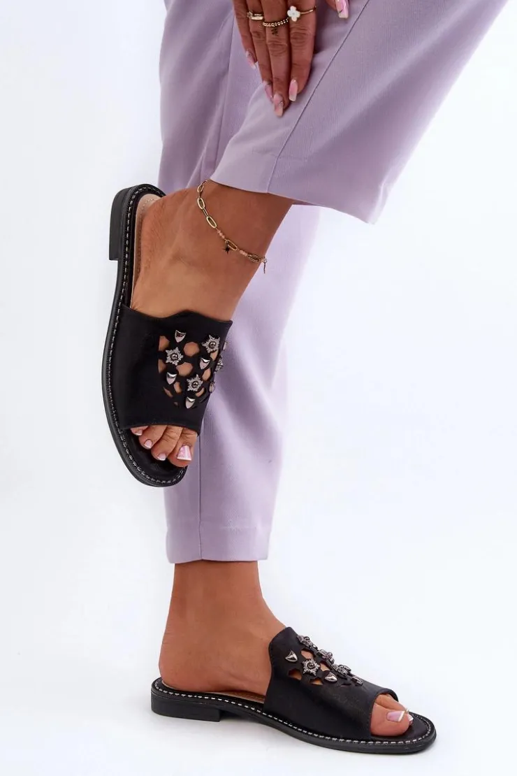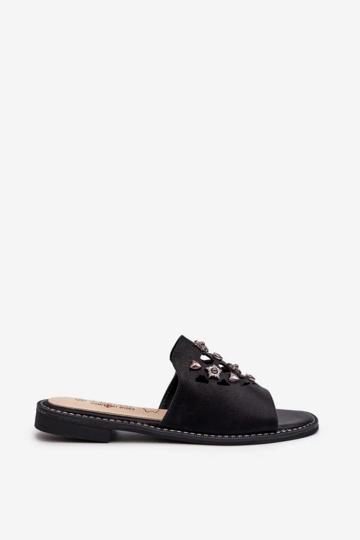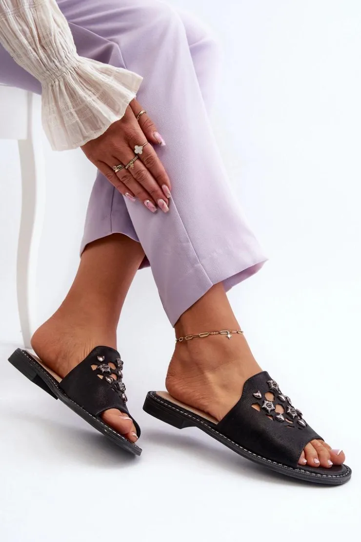 Damskie Damskie buty S.Barski Błyszczące Klapki Damskie Z Ozdobami S.Barski KV27-063 Czarne