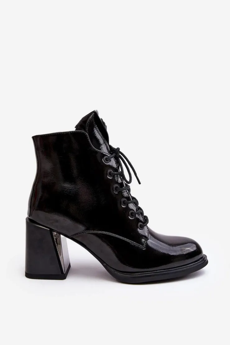 Botki damskie osadzone na obcasie z lustrzanym elementem. Wykonane z eko skóry. Zapinane na suwak oraz sznurowane. Cholewka za kostkę. Ja języku mała ozdoba. Noski zaokrąglone. Środek ocieplony kocem obuwniczym. Koniecznie powinnaś je mieć! Przy wyborze rozmiaru prosimy sugerować się tabelą rozmiarów.