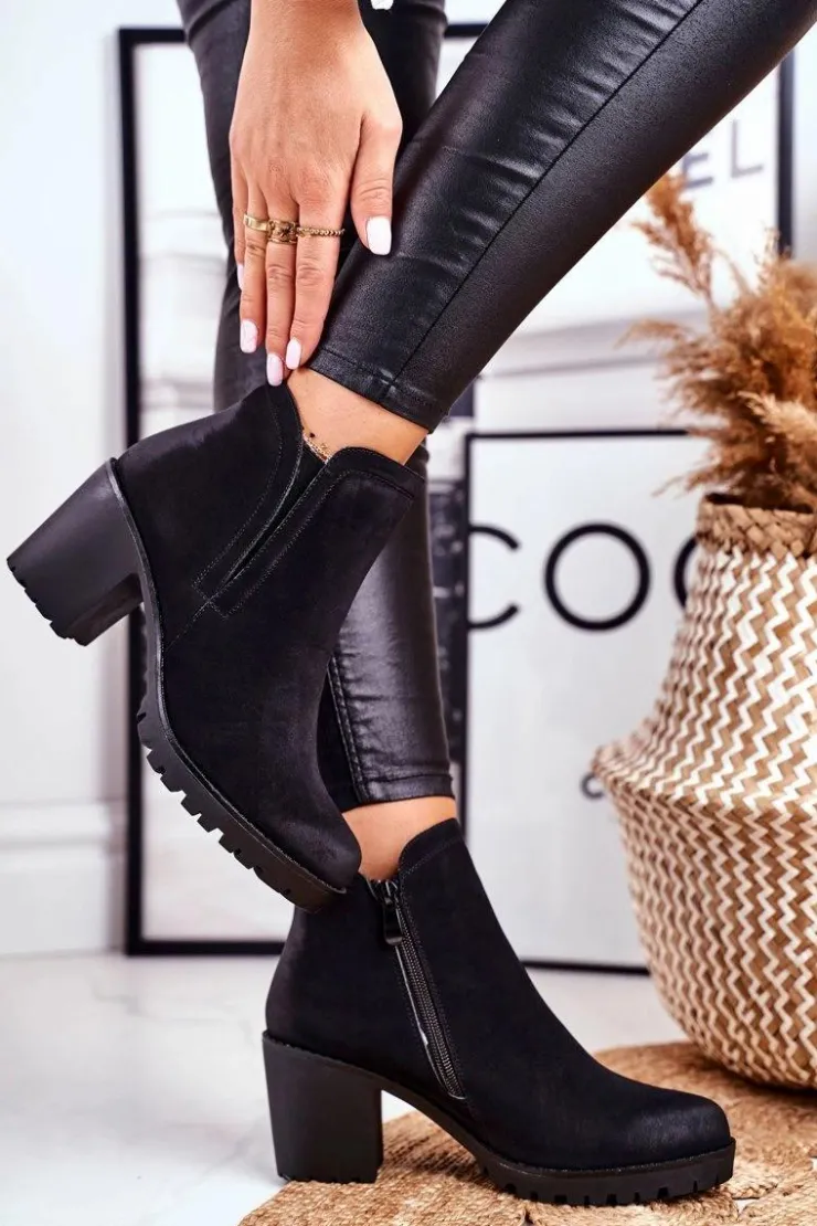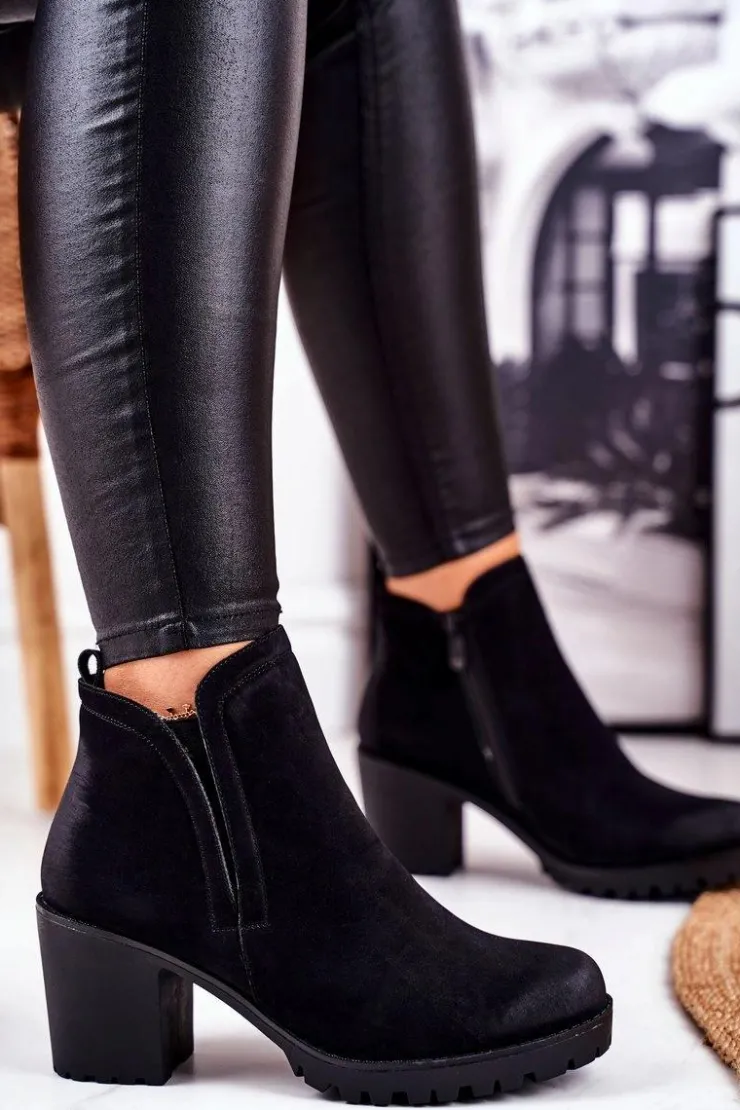 Damskie Damskie buty S.Barski Botki Damskie Na Słupku Ciepłe Czarne Veronica