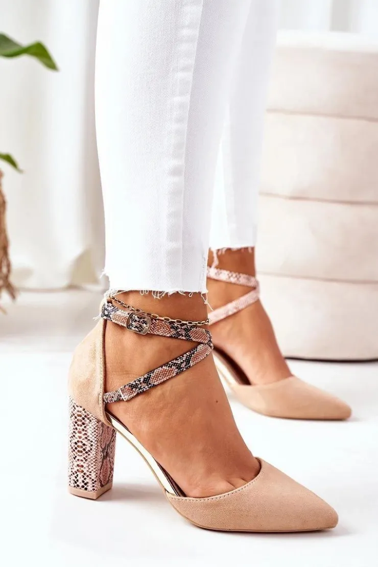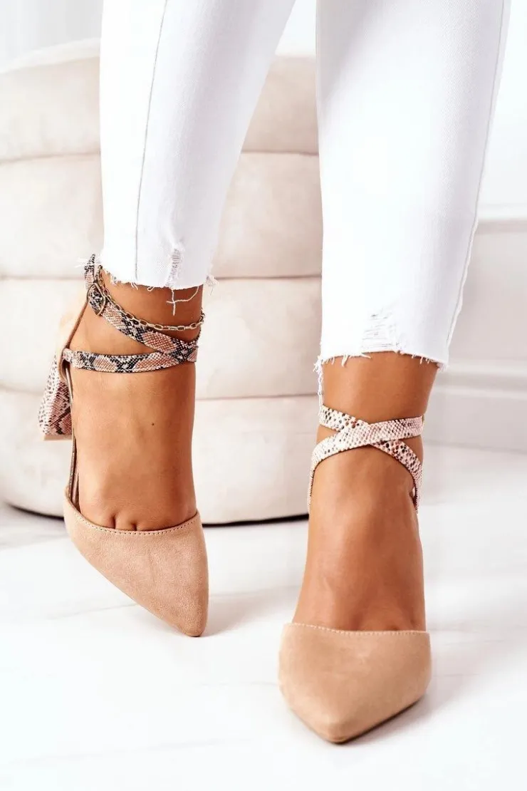 Damskie Damskie buty S.Barski Czółenka Na Słupku S.Barski Wężowe Beżowe