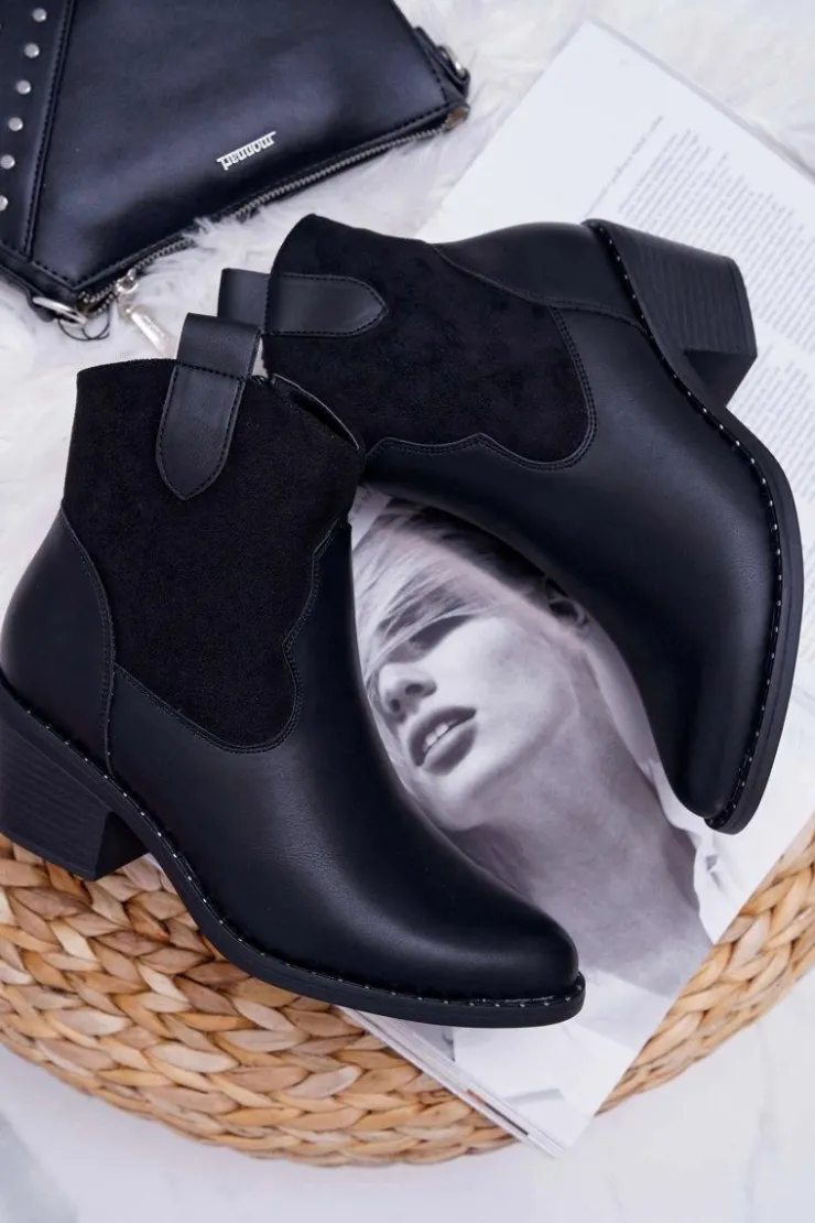 Damskie Damskie buty S.Barski Damskie Botki Kowbojki Czarne Barski 30-20