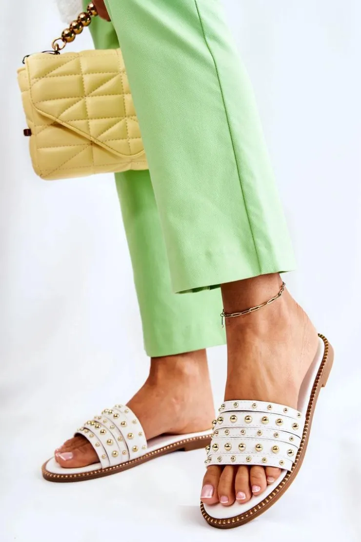 Damskie Damskie buty S.Barski Damskie Skórzane Klapki Z Ozdobą Białe Brien
