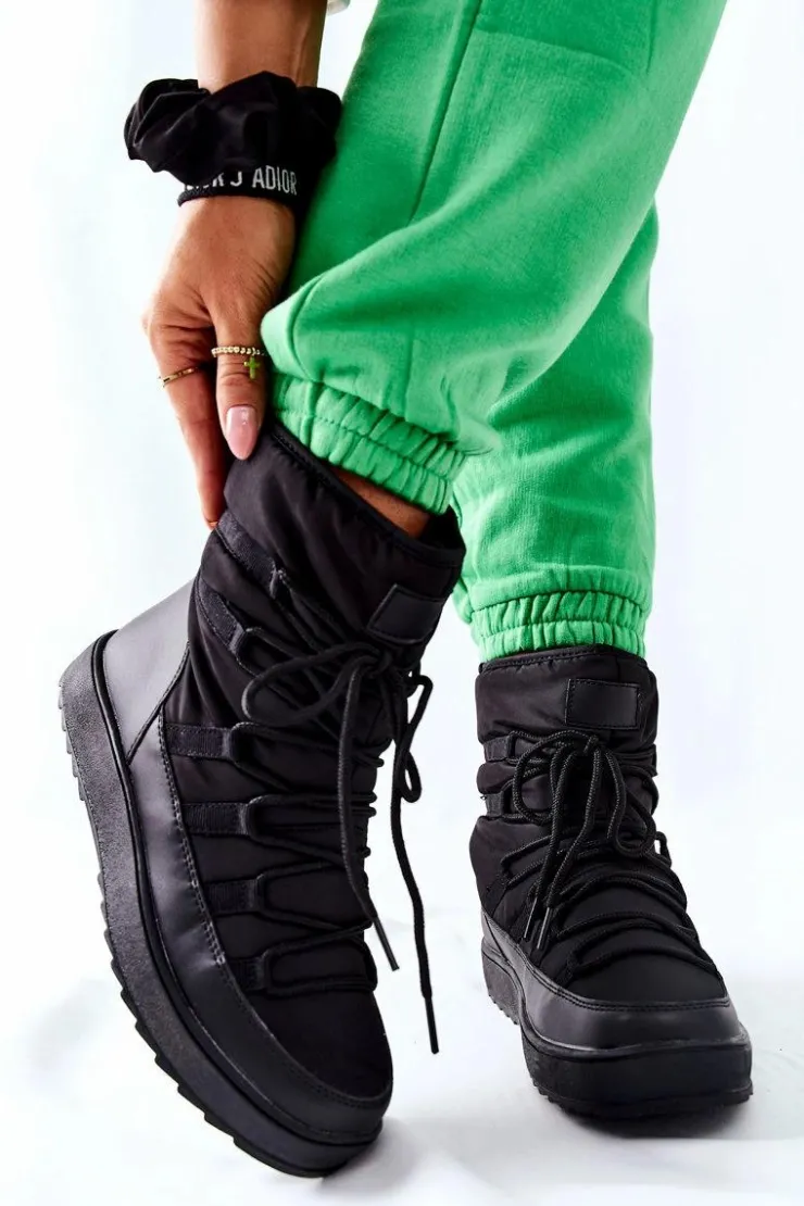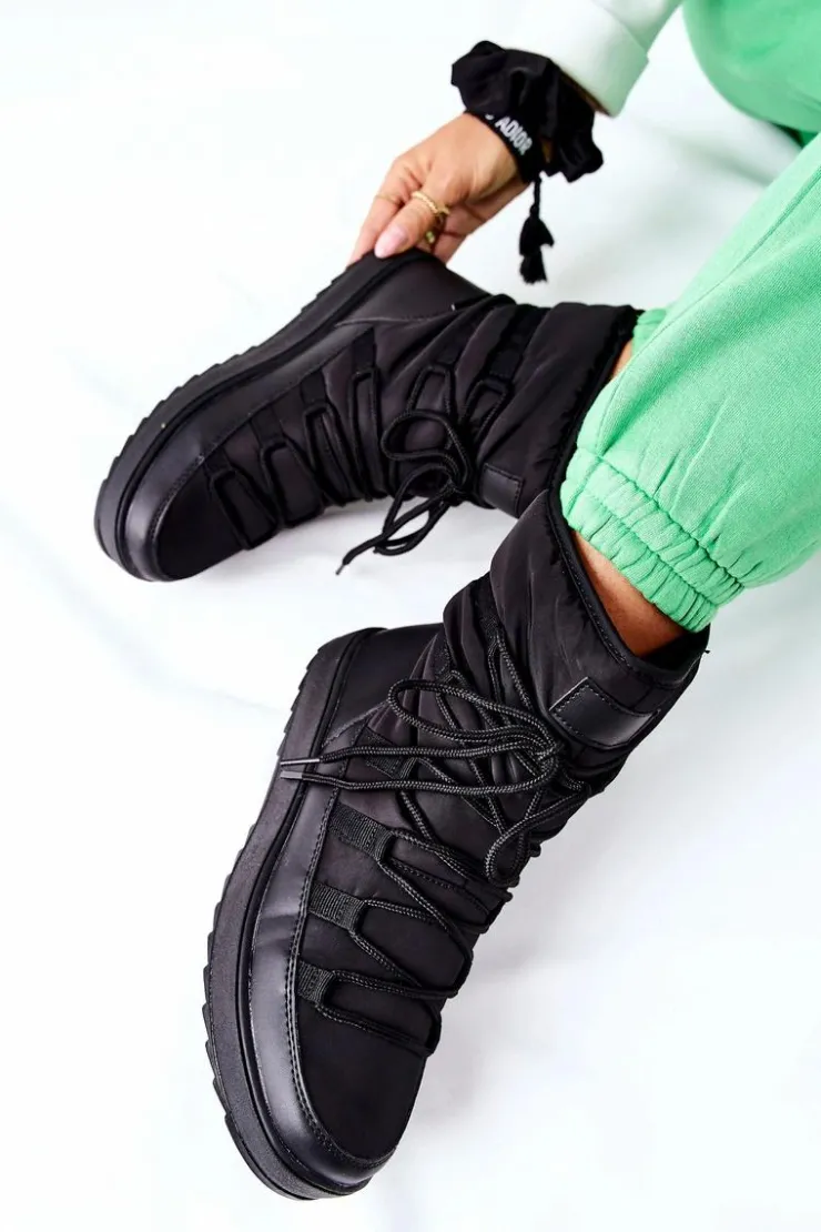 Buty wewnątrz są niesamowicie miłe w dotyku dzięki zastosowaniu ocieplenia w postaci kożuszka. Zewnętrzna część buta została wykonana z materiału tekstylnego. Solidne sznurowanie zapewni idealne dopasowanie się buta do nogi. W tych śniegowcach żadna pogoda nie będzie Ci straszna! Przy wyborze rozmiaru prosimy kierować tabelą rozmiarów.