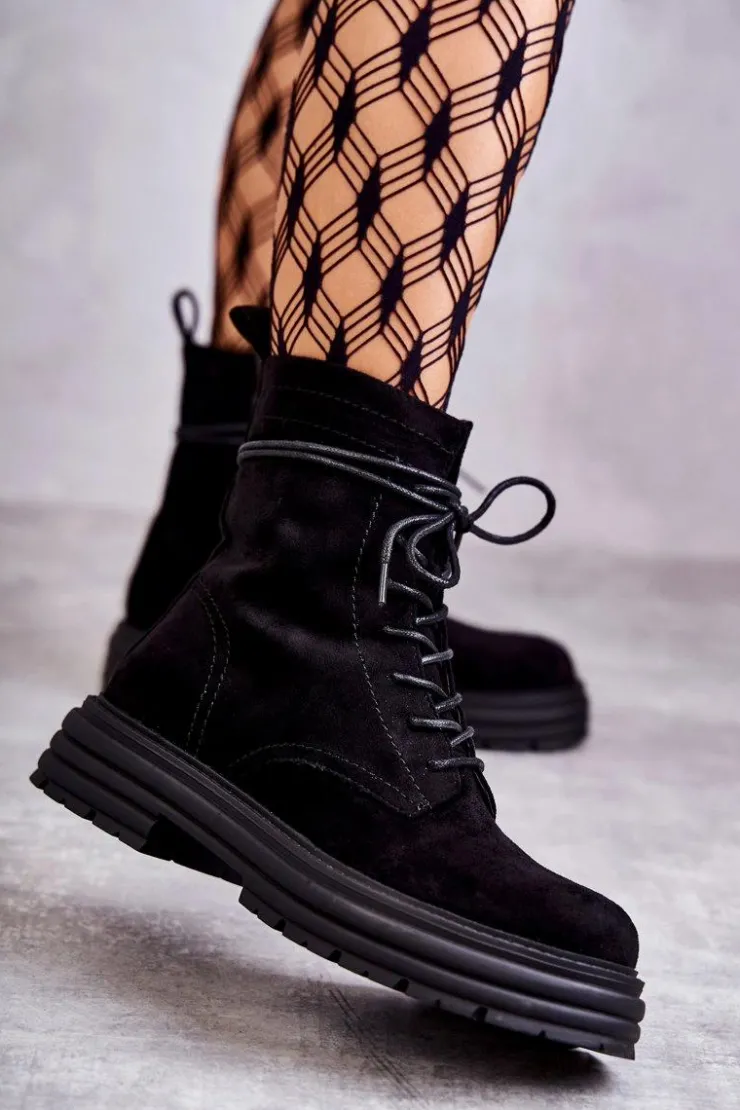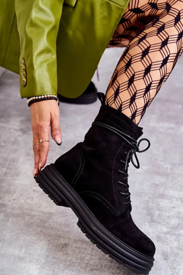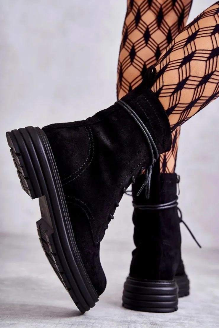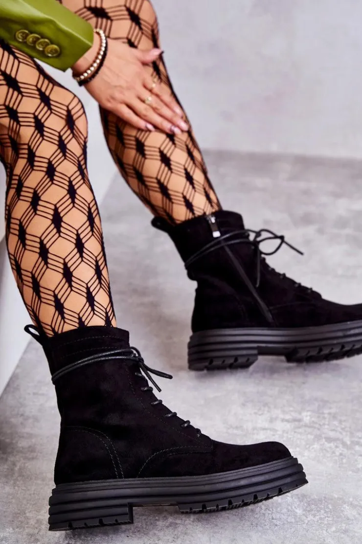 Klasyczne botki z cholewką za kostkę zostały wykonane z wysokiej jakości eko skóry. Model ten posiada z boku cholewki suwak oraz klasyczne sznurowanie z przodu. Dodatkowo posiadają usztywniany zapiętek. Osadzone na delikatnej platformie oraz płaskim obcasie. Nie posiadają ocieplenia. Model ten świetnie sprawdzi się w wielu stylizacjach! Przy wyborze rozmiaru prosimy sugerować się tabelą rozmiarów.