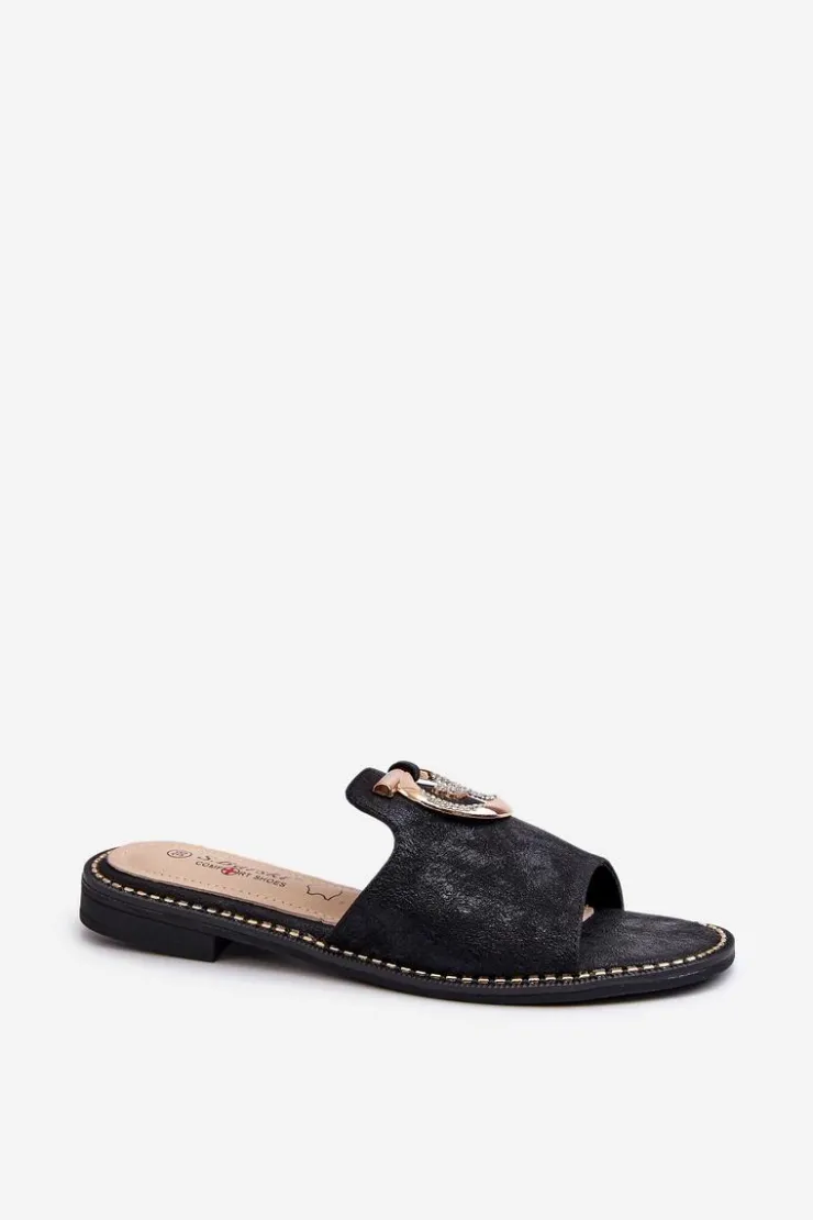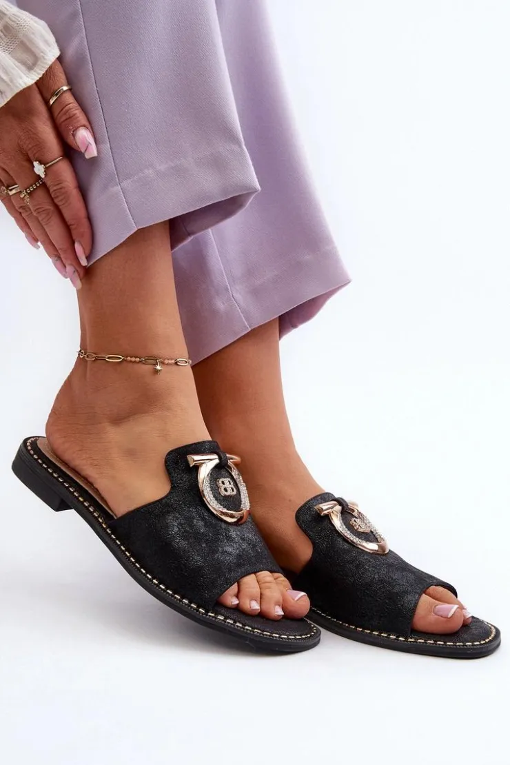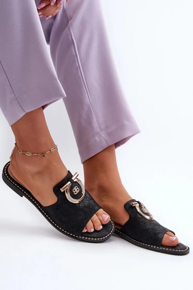 Eleganckie klapki damskie marki S.Barski są nie tylko stylowe, ale także wyjątkowo komfortowe. Osadzone na płaskim obcasie. Błyszczące ze złotą ozdobą. Miękka wkładka ze skóry naturalnej zapewni wygodę podczas użytkowania. Idealny wybór na wiele różnych okazji, doda wyrafinowanego uroku Twojej stylizacji. Przy wyborze rozmiaru prosimy sugerować się tabelą rozmiarów.