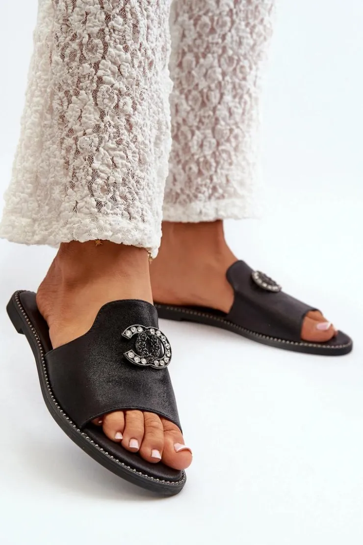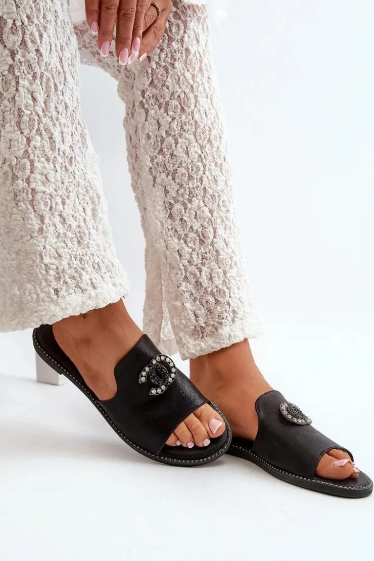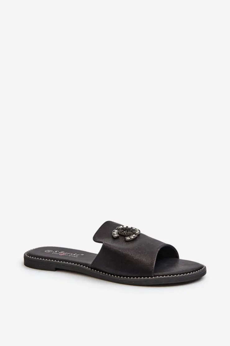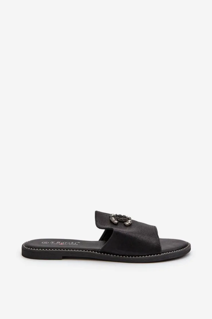 Damskie Damskie buty S.Barski Eleganckie Klapki Damskie Błyszczące Z Ozdobą S.Barski KV27-050 Czarne