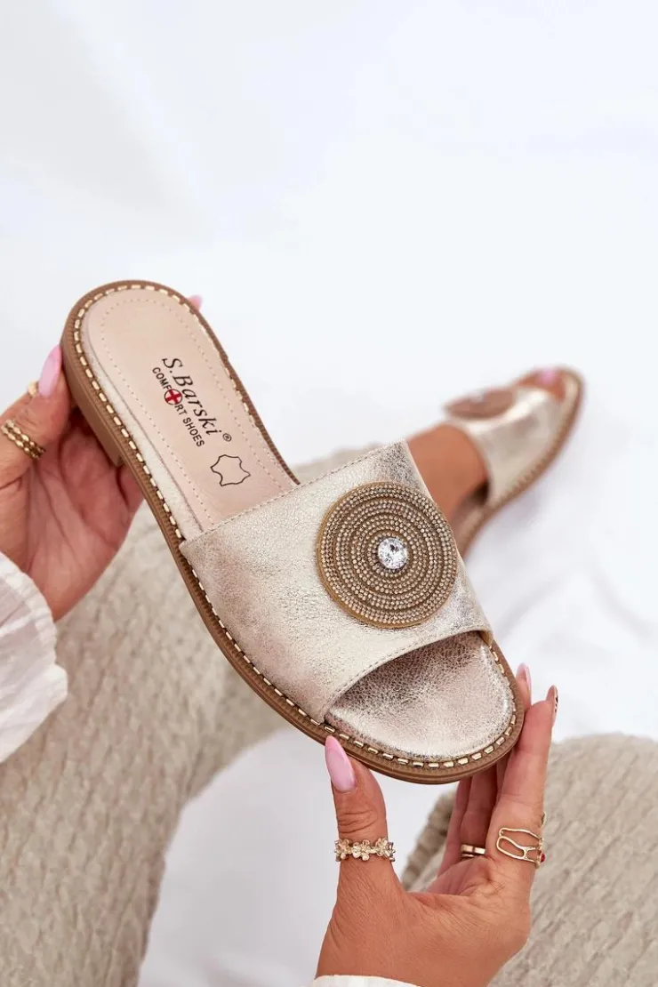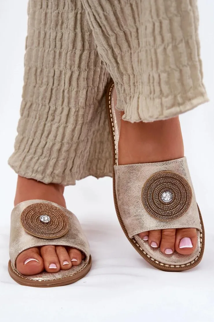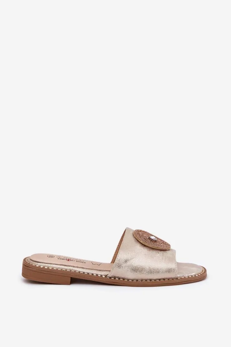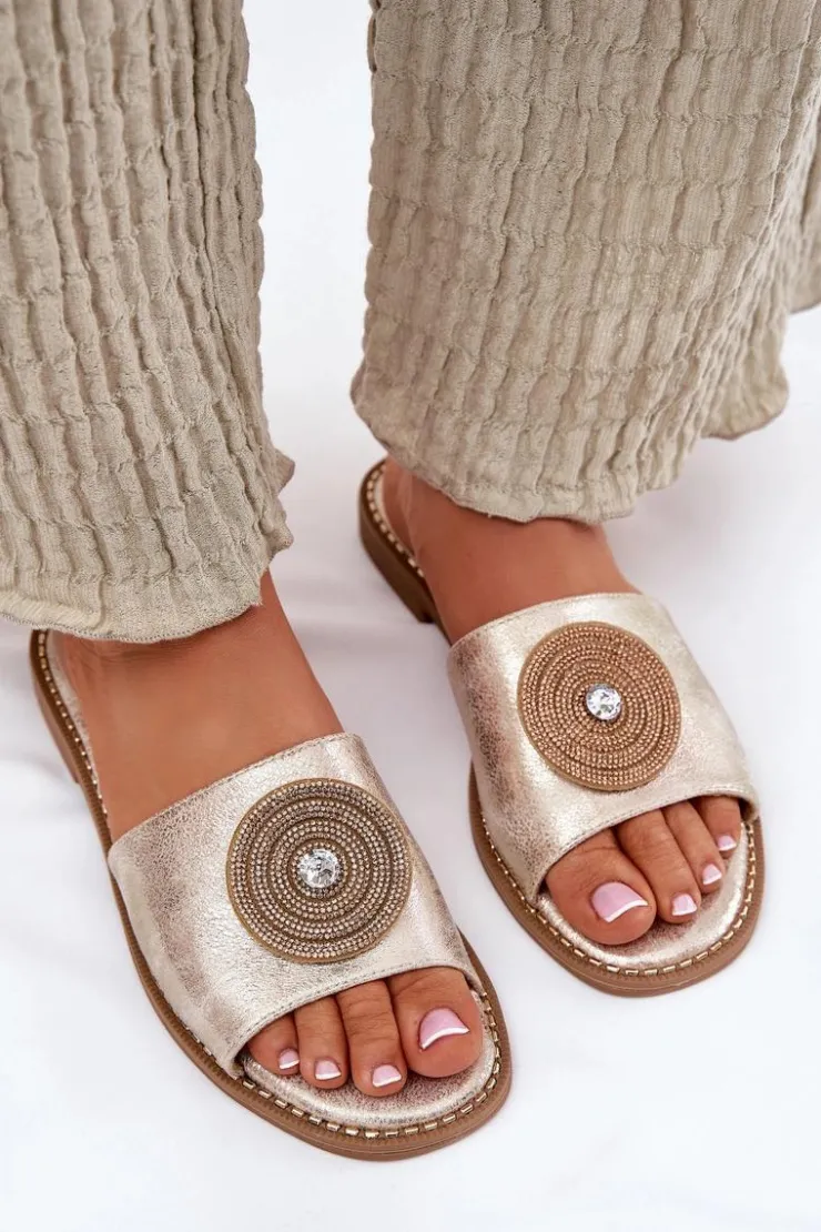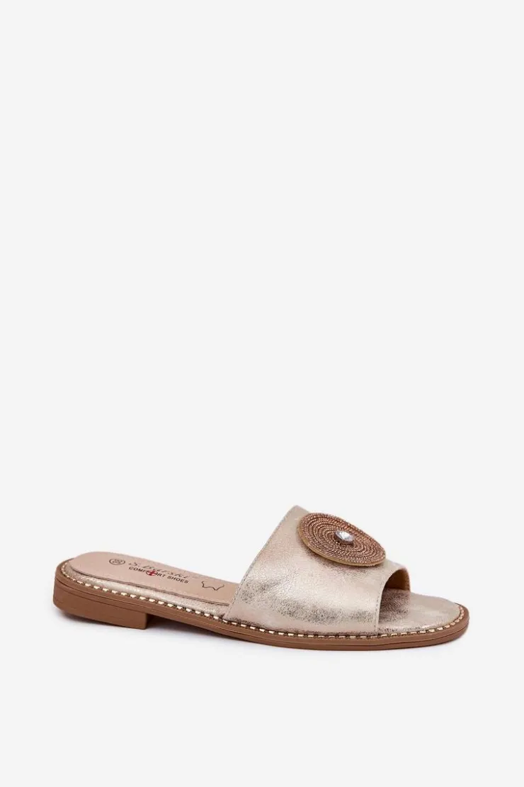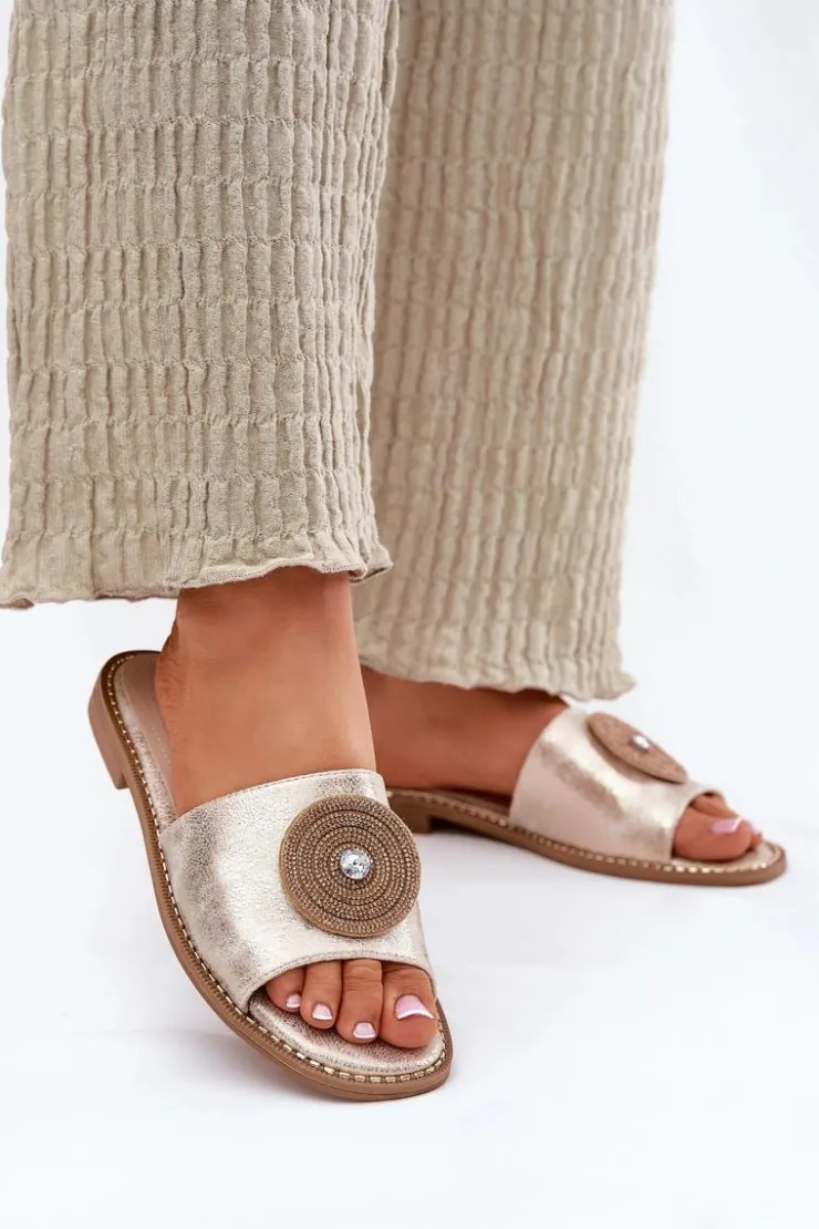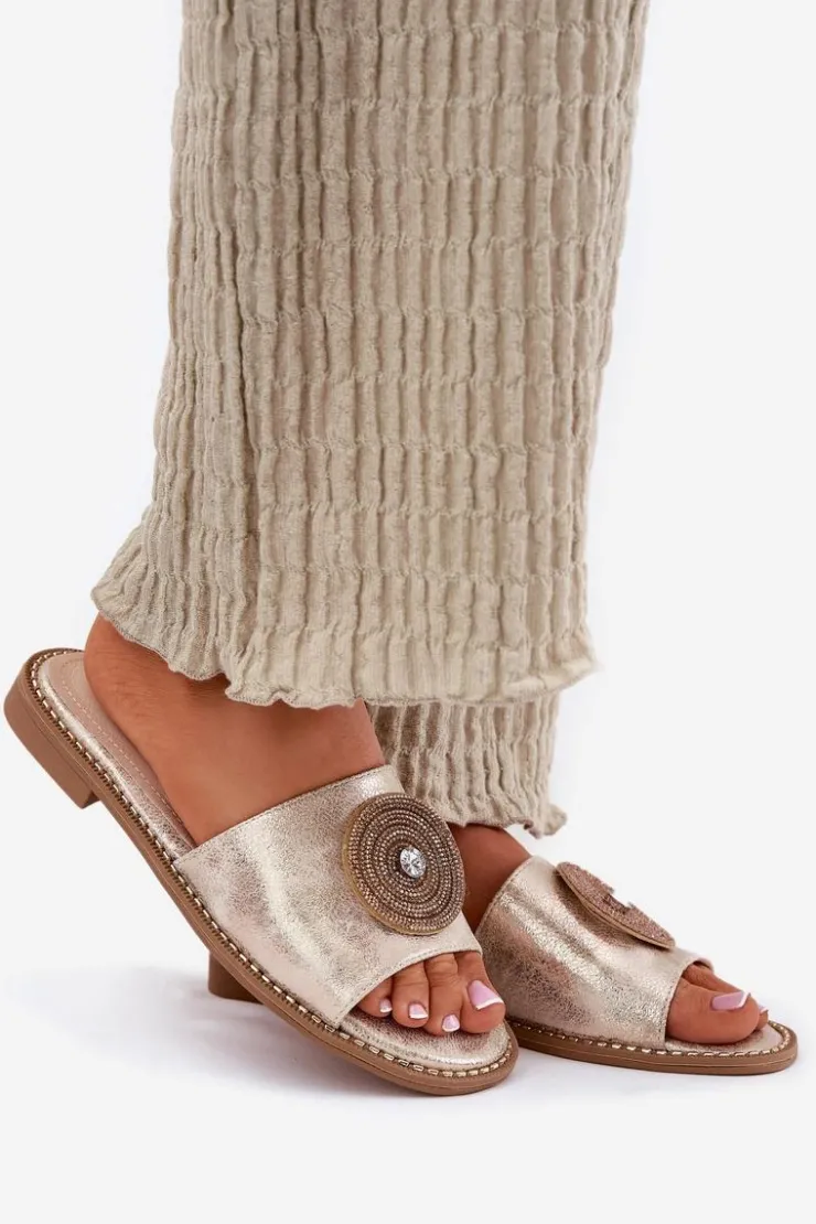 Eleganckie klapki damskie wykonane z wysokiej jakości eko skóry. Osadzone na płaskim obcasie, zapewniają stabilność i wygodę przez cały dzień. Skórzana wkładka gwarantuje komfort i odpowiednią wentylację, dbając o wygodę stóp nawet w ciepłe dni. Z przodu znajduje się ozdoba, która dodaje wyjątkowego uroku i elegancji, czyniąc je doskonałym wyborem do letnich stylizacji. Te klapki to świetna opcja zarówno do casualowych, jak i bardziej eleganckich zestawów. Przy wyborze rozmiaru prosimy sugerować się tabelą rozmiarów.