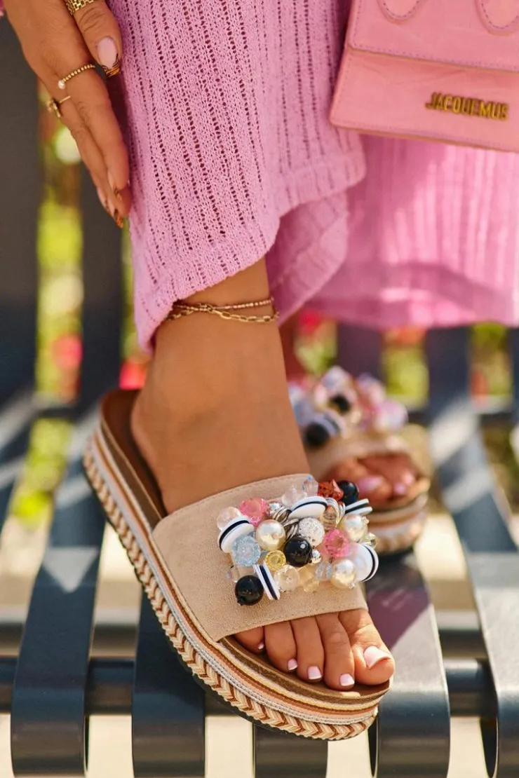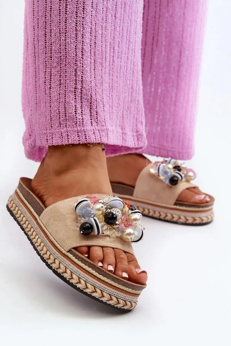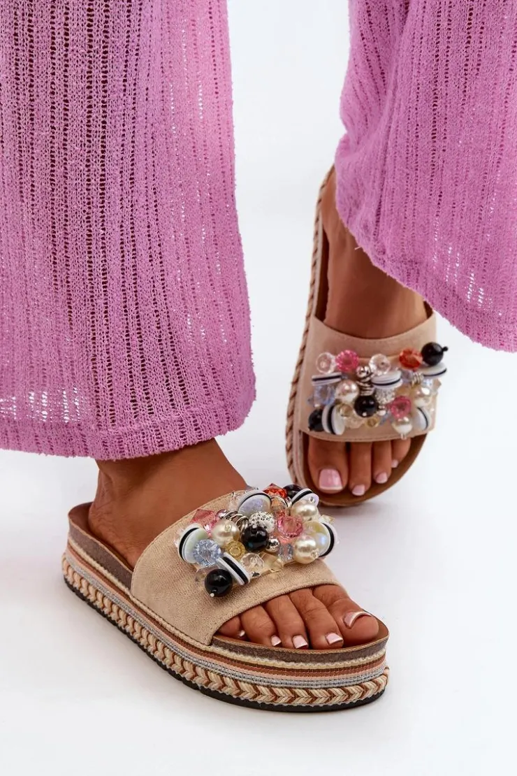 Stylowe klapki damskie od marki S.Barski. Osadzone na zdobionej platformie. Na pasku liczne ozdoby. Model ten posiada profilowaną wkładkę, która zapewni wygodę na każdym kroku. Idealne do letnich sukienek i spodni! Przy wyborze rozmiaru prosimy sugerować się tabelą rozmiarów.