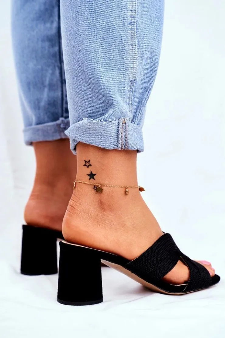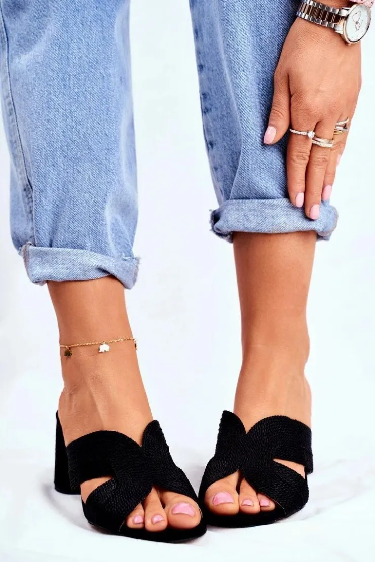 Damskie Damskie buty S.Barski Klapki Damskie Na Słupku Wsuwane Czarne Guest