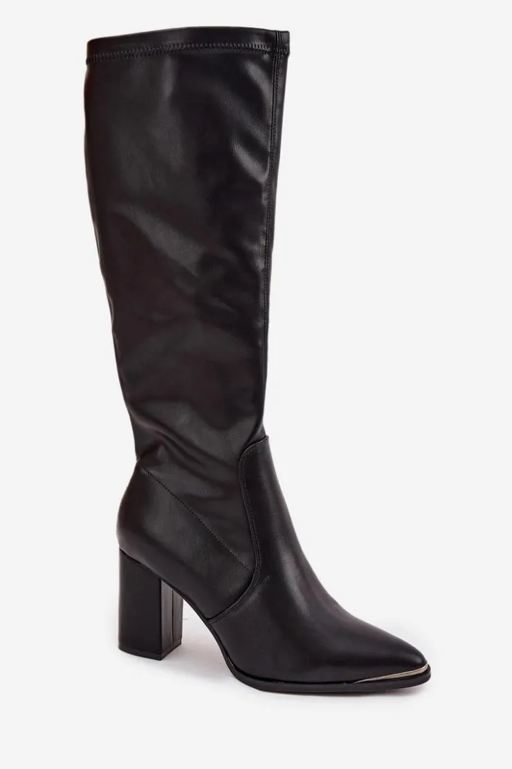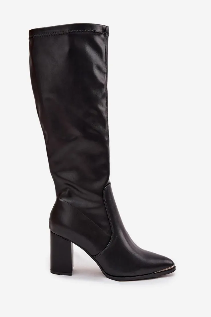 Kozaki damskie z cholewką do kolana. Zapinane na zamek. Model ten wyróżnia się szpiczastymi noskami oraz obcasem w formie słupka. Buty te doskonale dopełnią stylizacje z sukienkami i spódnicami! Przy wyborze rozmiaru prosimy sugerować się tabelą rozmiarów.