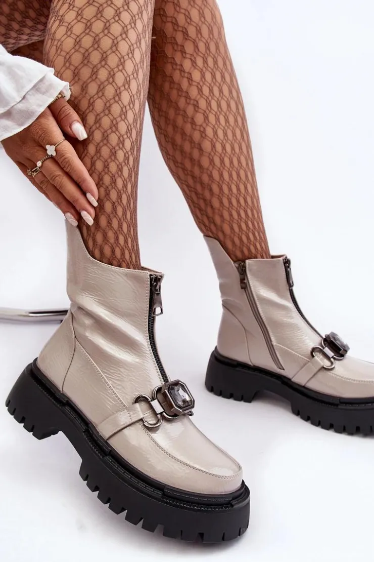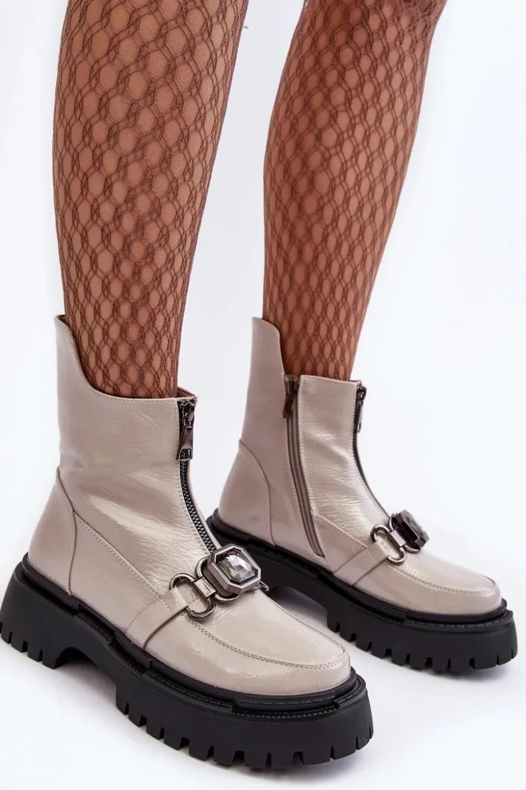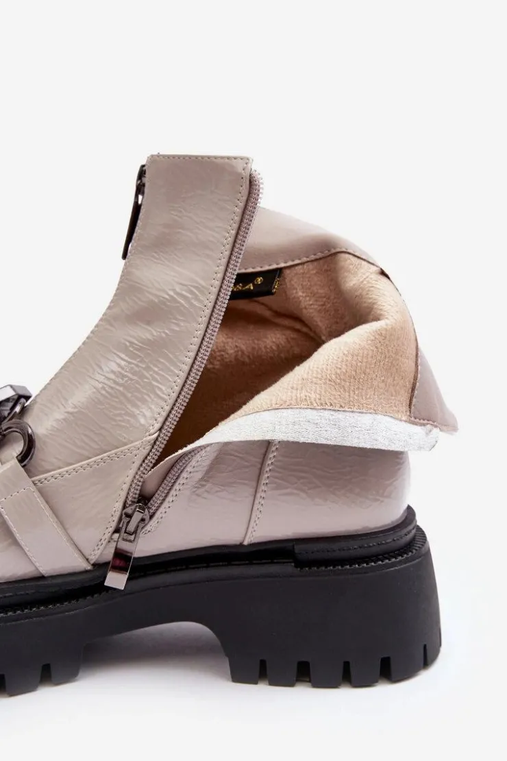 Damskie Damskie buty S.Barski Lakierowane Damskie Botki Na Suwak D&A MR870-94 Jasnoszare