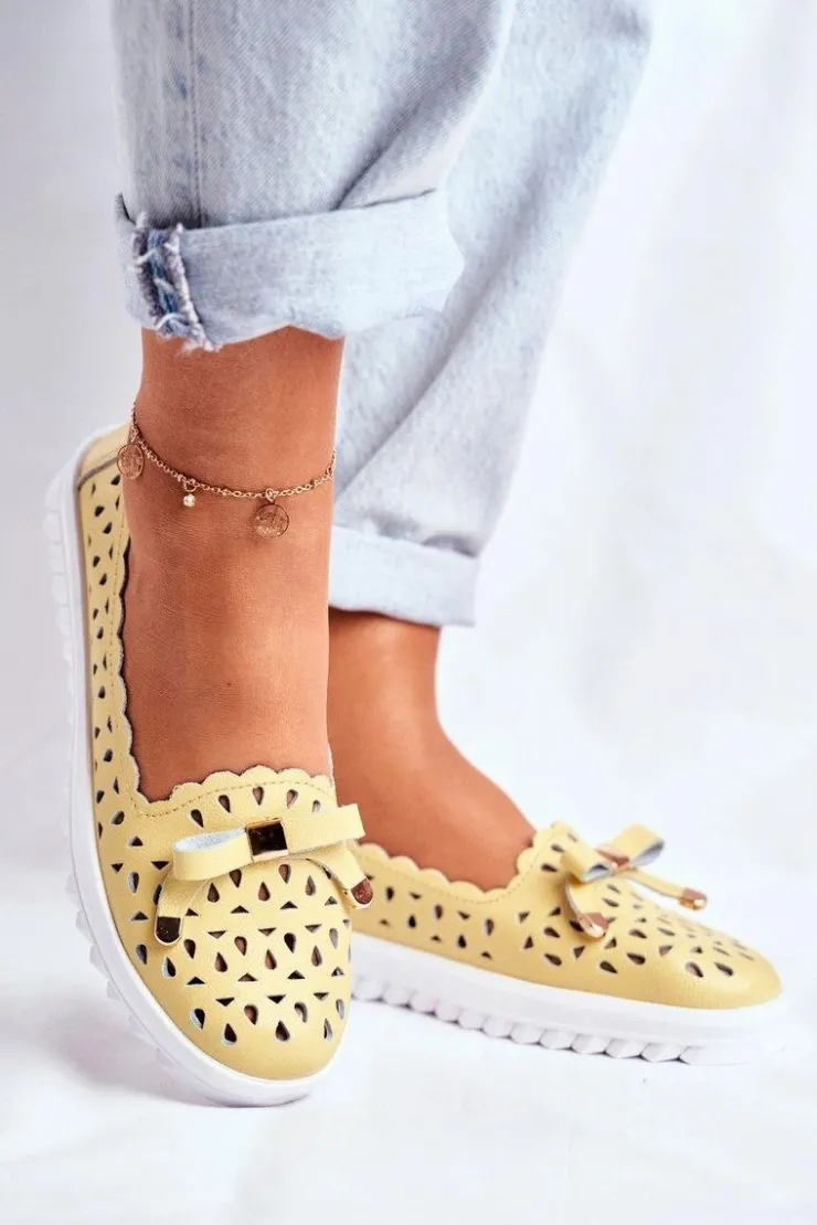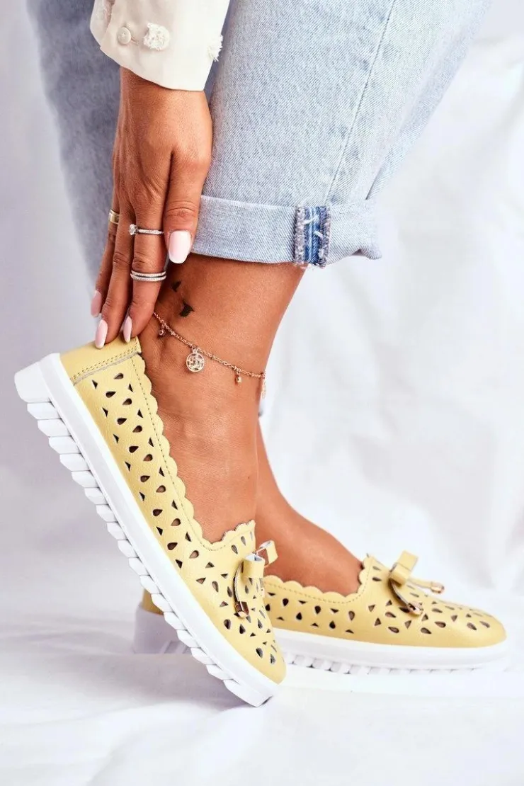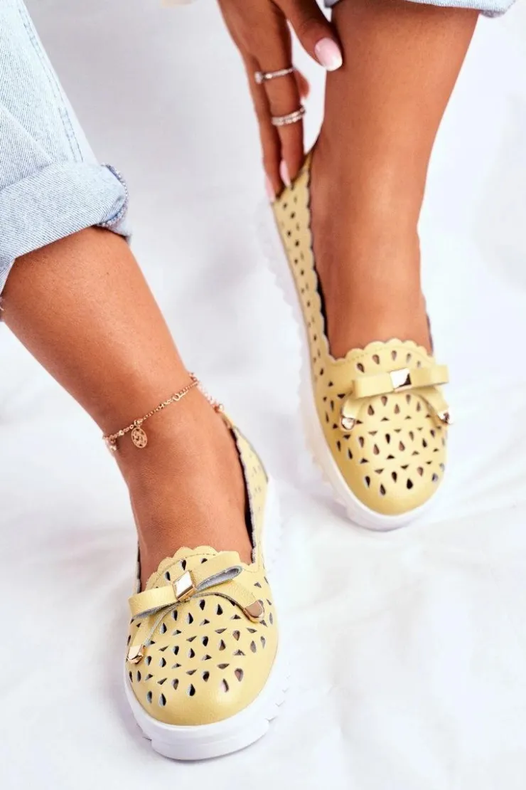 Damskie Damskie buty S.Barski Mokasyny Damskie Skórzane Ażurowe LR71515 Żółte Murrieta