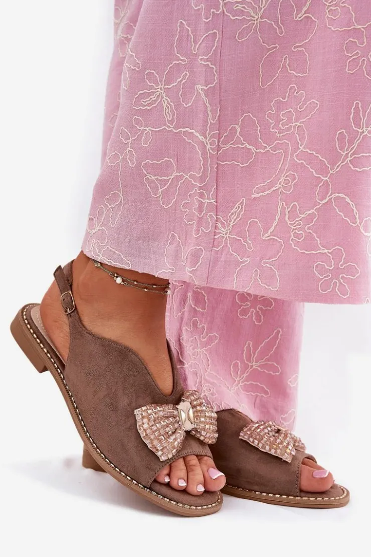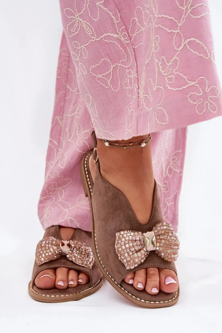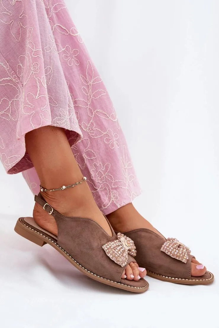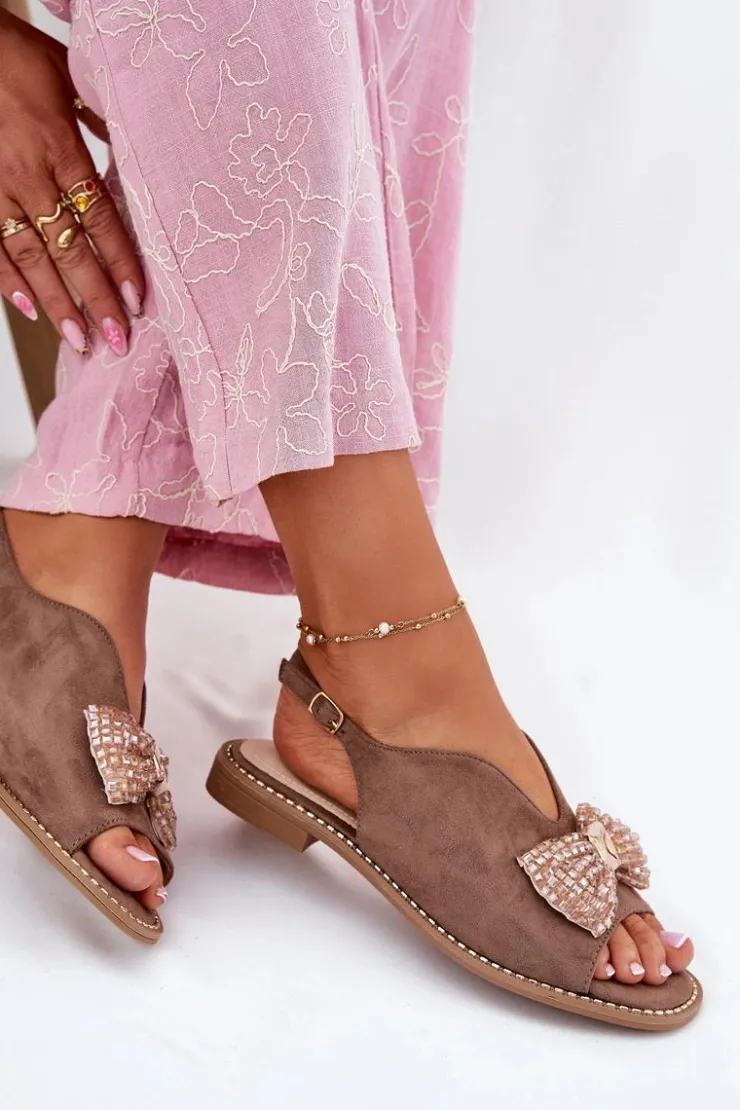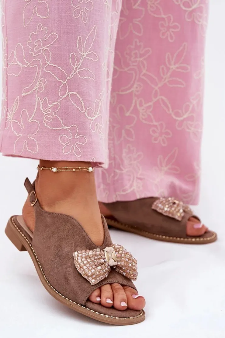 Damskie Damskie buty S.Barski Sandały Damskie Z Kokardą Na Płaskim Obcasie S.Barski KV51-014 Ciemnobeżowe