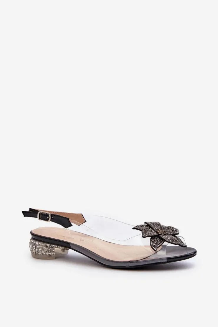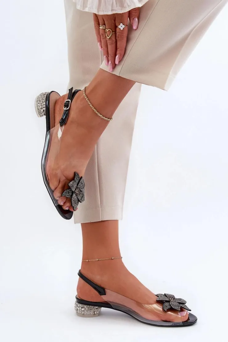 Stylowe sandały z transparentną cholewką to prawdziwy hit! Osadzone na niskim obcasie ozdobionym cyrkoniami. Zapinane na regulowany pasek ze sprzączką. Wkładka ze skóry naturalnej jest miękka i wygodna. Z przodu ozdobny kwiatek. Idealne na różne uroczystości oraz wieczorne wyjścia! Przy wyborze rozmiaru prosimy sugerować się tabelą rozmiarów.