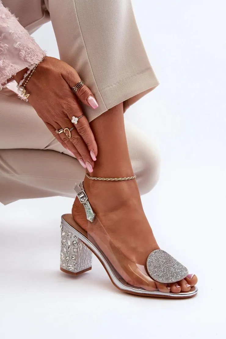 Modne sandały na zdobionym słupku w transparentnym stylu są doskonałym dodatkiem do letnich i wieczorowych stylizacji. Zapinane na regulowany pasek ze sprzączką, zapewniają one wygodę i stabilność. Miękka, skórzana wkładka dodaje komfortu podczas długotrwałego noszenia. Idealne do eleganckich i stylowych kreacji! Przy wyborze rozmiaru prosimy sugerować się poniższą tabelą rozmiarów.