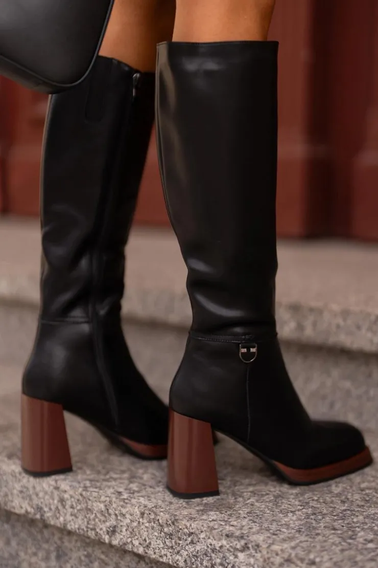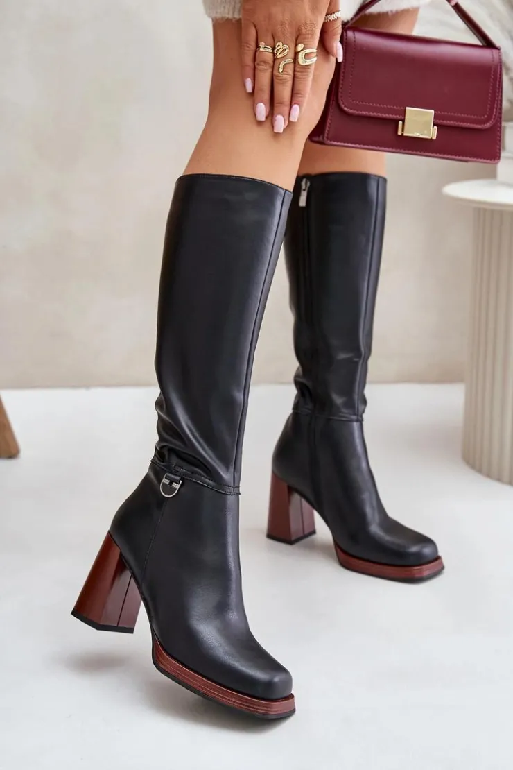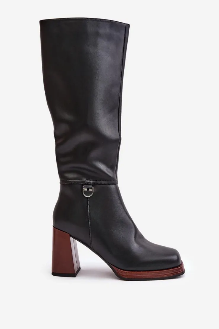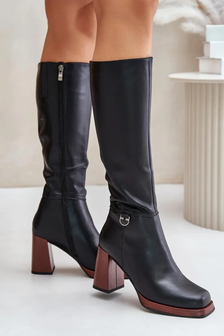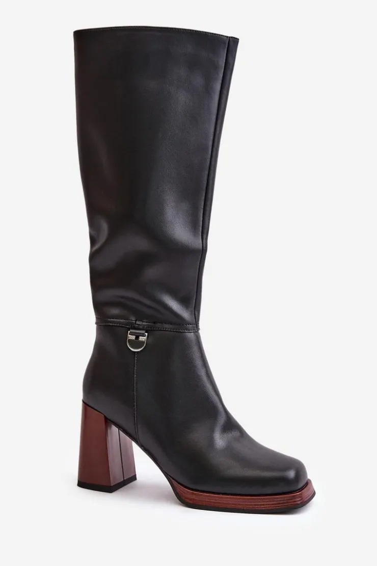 Eleganckie kozaki damskie do kolana. Wykonane z naturalnej skóry. Osadzone na obcasie w postaci słupka. Noski w kwadrat. Zapinane na zamek. Środek ocieplany kocem obuwniczym, co zapewni ciepło i komfort w mroźniejsze dni. Cholewka sięga do kolana. Idealne do sukienek i spódnic! Przy wyborze rozmiaru prosimy sugerować się tabelą rozmiarów.