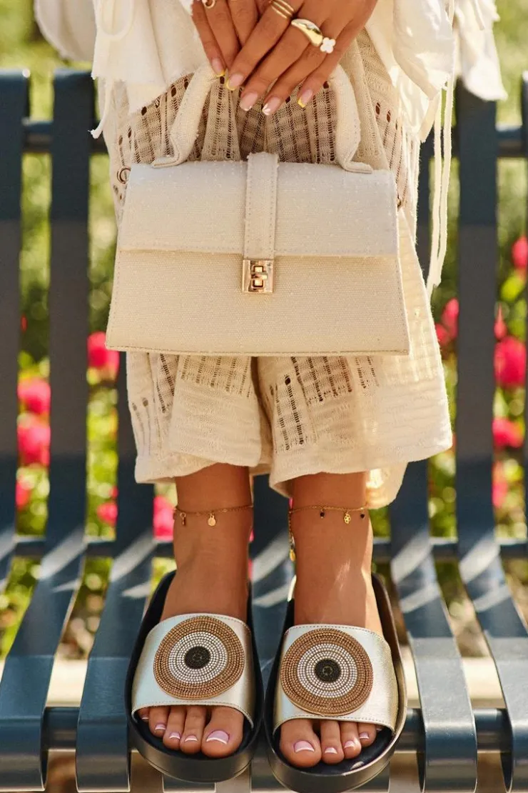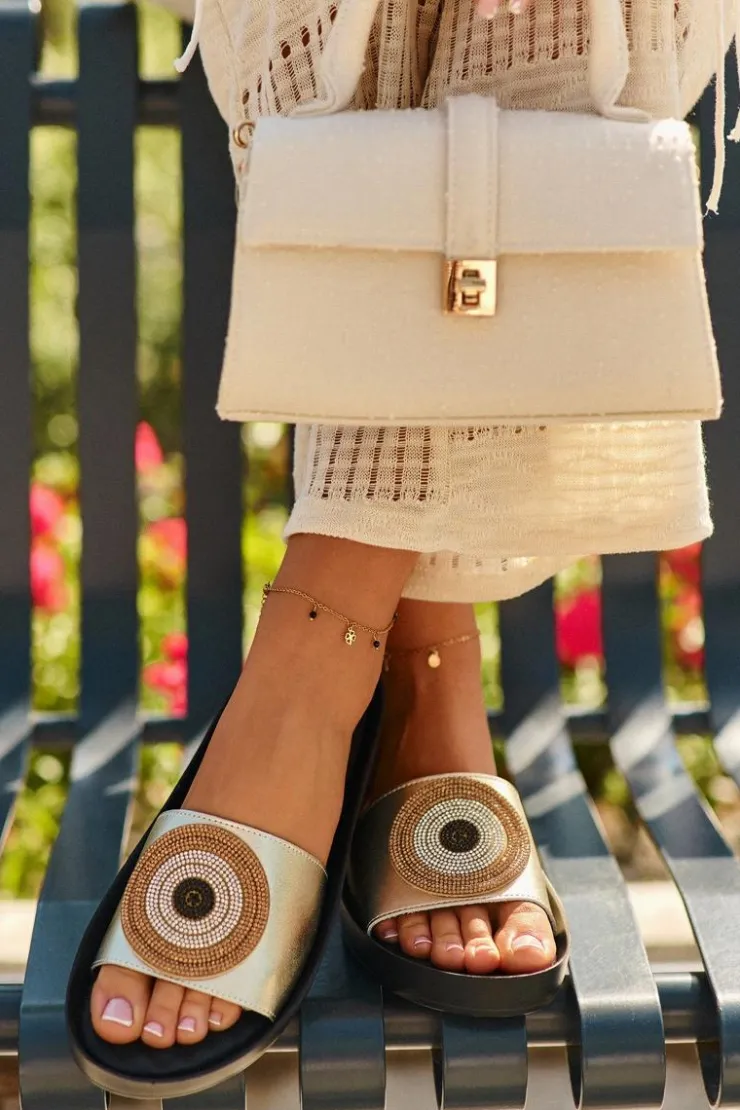 Damskie klapki z naturalnej skóry to połączenie elegancji i komfortu. Osadzone na stabilnej platformie z delikatnym koturnem. Model ten wyróżnia się błyszczącą ozdobą na pasku. Wkładka Comfort z naturalnej skóry, gwarantuje wyjątkową wygodę noszenia przez cały dzień. Przy wyborze rozmiaru prosimy sugerować się tabelą rozmiarów.