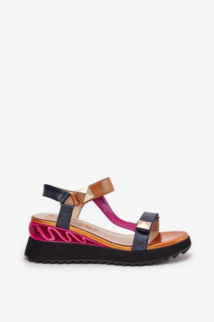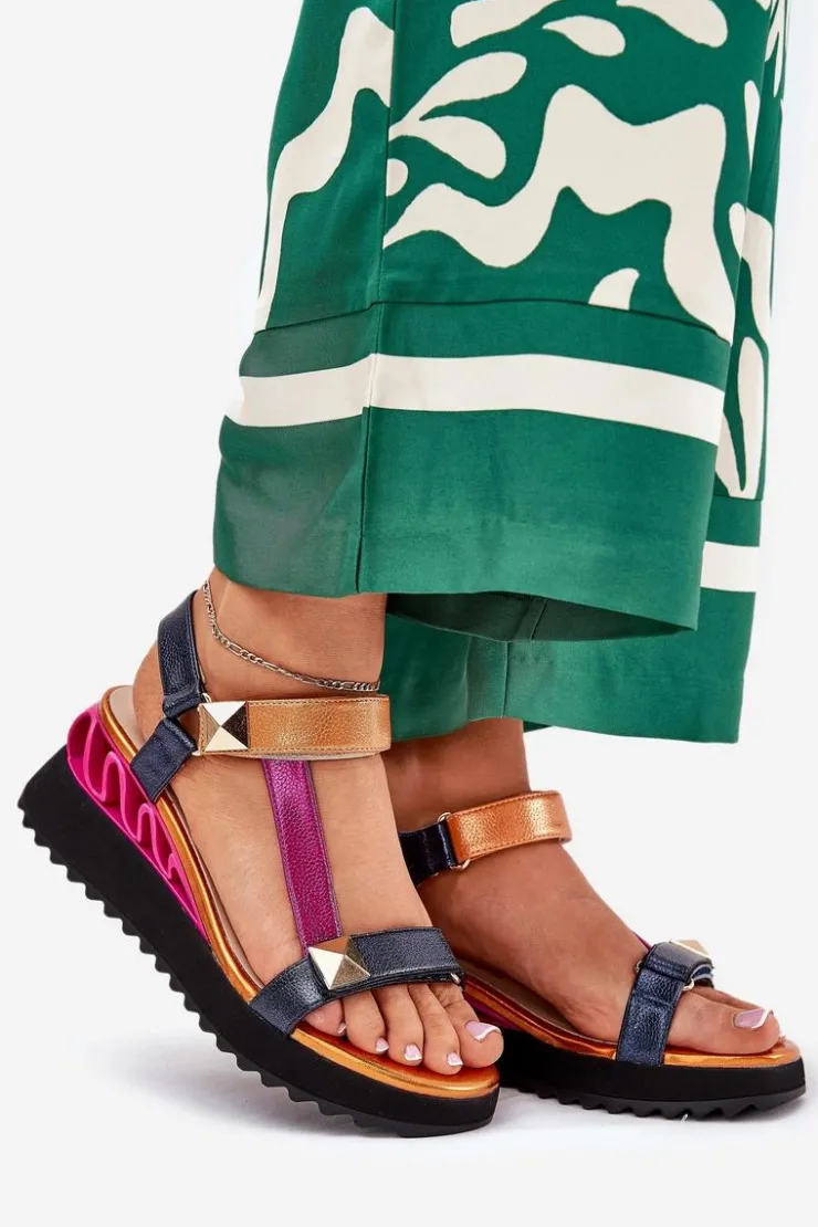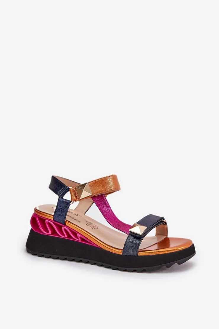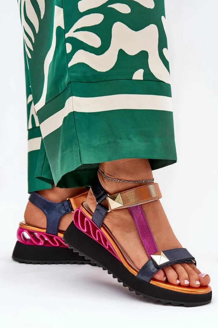 Damskie sandały na koturnie stanowią doskonały wybór na gorące letnie dni. Wykonane z naturalnej skóry. Dzięki praktycznemu zapięciu na rzep, ich zakładanie jest szybkie i proste. Wkładka wykonana z naturalnej skóry gwarantuje komfort noszenia przez cały dzień. Ten model łączy stylowy wygląd z wygodą i swobodą ruchu w każdej sytuacji. Przy wyborze rozmiaru prosimy sugerować się tabelą rozmiarów.