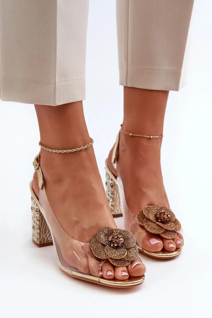 Eleganckie Sandały damskie z transparentną cholewką. Ozdoba z przodu nadaje subtelności. Obcas słupek wyróżnia się wyjątkowym wyglądem. Doskonałe na wieczorne wyjścia czy specjalne okazje, te sandały dodadzą Twojej stylizacji niepowtarzalnego uroku. Przy wyborze rozmiaru prosimy sugerować się tabelą rozmiarów.