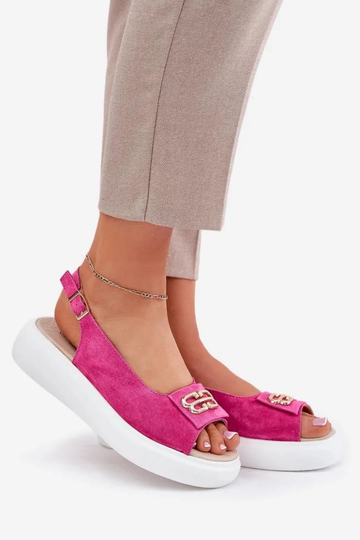 Damskie sandały z naturalnego zamszu to elegancka propozycja na letnie dni. Z przodu sandałów znajduje się subtelny złoty detal, który dodaje im wyjątkowego uroku i elegancji. Osadzone na platformie, zapewniają stabilność i komfort przez cały dzień. Skórzana wkładka gwarantuje wygodę, sprawiając, że te sandały będą doskonałym uzupełnieniem zarówno codziennych, jak i bardziej eleganckich stylizacji. Idealne na letnie wyjścia i specjalne okazje. Przy wyborze rozmiaru prosimy kierować się tabelą rozmiarów.