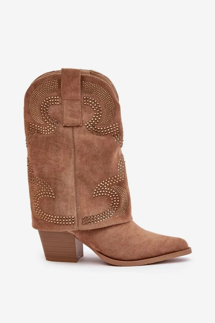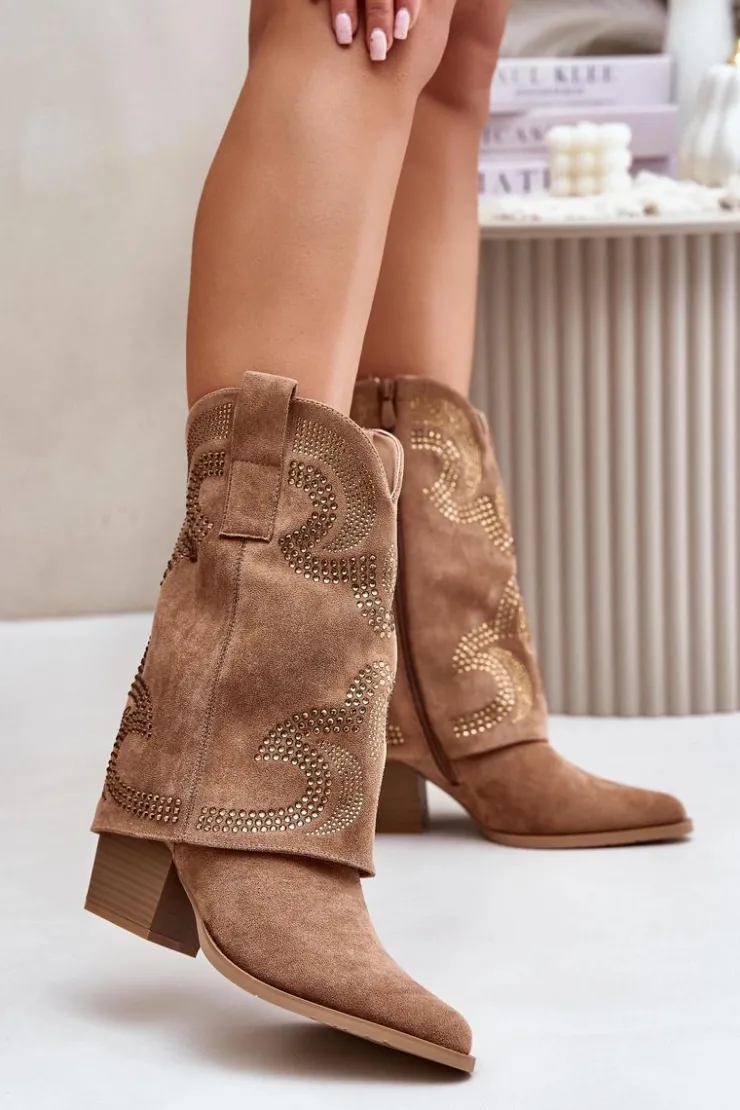 Kowbojki do połowy łydki to modna i stylowa propozycja na każdą okazję. Wyróżniają się zdobioną cholewką, która nadaje im unikalnego charakteru, a noski w szpic podkreślają ich elegancki, zadziorny styl. Osadzone na stabilnym obcasie typu słupek, zapewniają komfort noszenia i dodają sylwetce subtelnej wysokości. Zapięcie na zamek ułatwia zakładanie, sprawiając, że te botki są zarówno praktyczne, jak i efektowne. Idealne do casualowych oraz bardziej wyrazistych stylizacji. Przy wyborze rozmiaru prosimy sugerować się tabelą rozmiarów.
