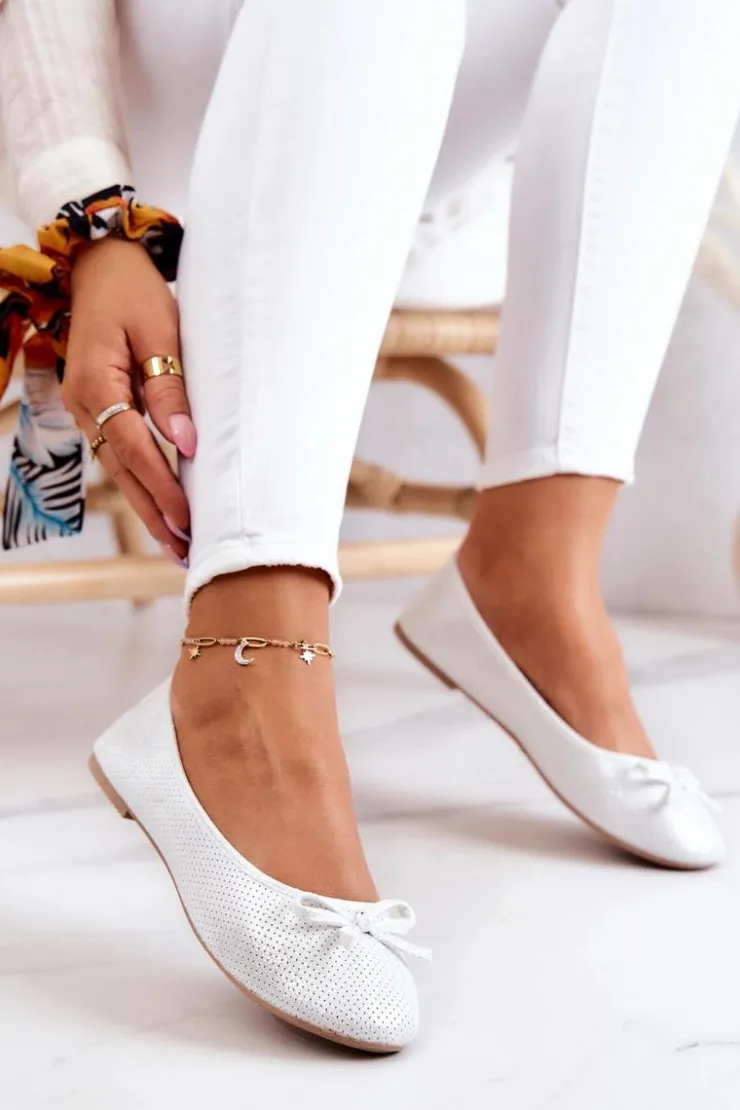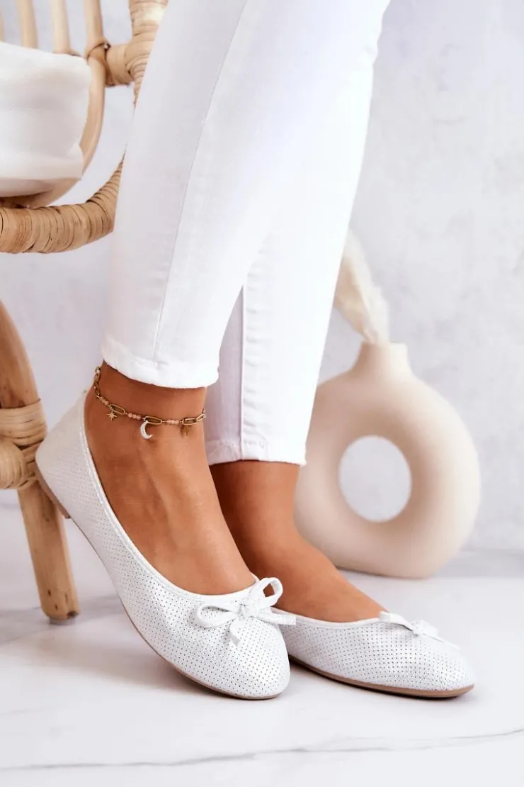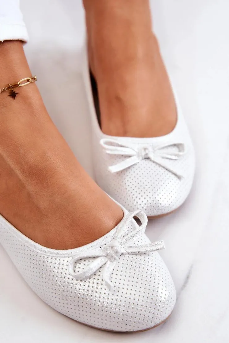 Balerinki w pięknym, metalicznym kolorze wykonane z materiału tekstylnego. Pasują zarówno do codziennych jak i eleganckich stylizacji. Buty, w których przetańczymy całą noc! Profilowana, miękka wkładka pokryta jest skórą naturalną. Gwarancja komfortu – zapewniona! Urocza kokardka na przodzie balerinki. Przy wyborze rozmiaru prosimy sugerować się tabelą rozmiarów.
