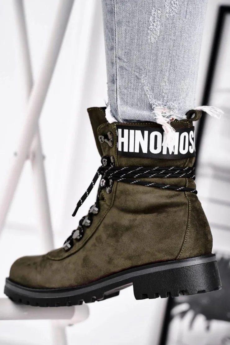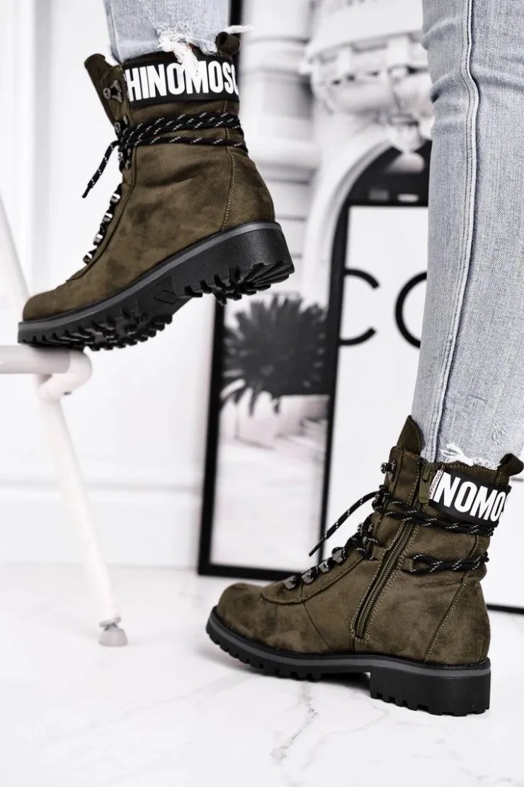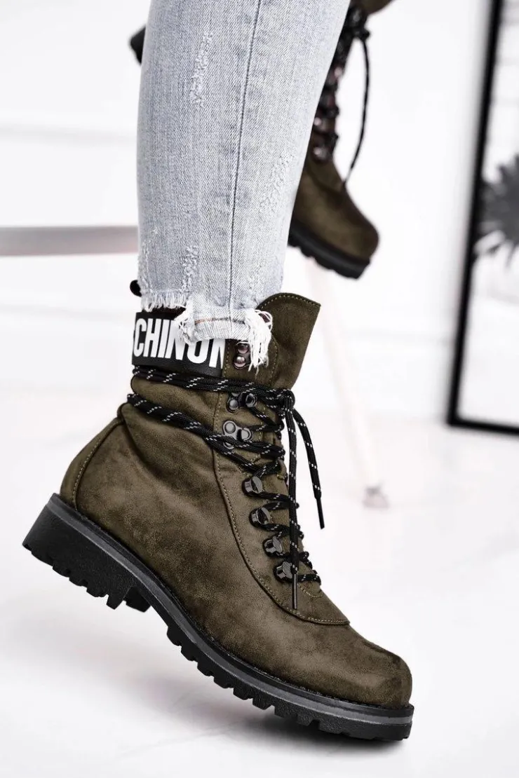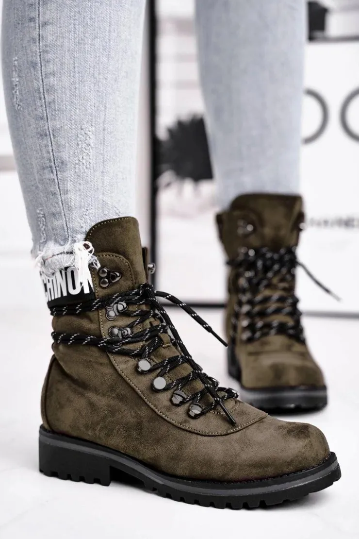 Damskie Evento Botki Damskie Płaski Obcas Na Suwak Zielone Popsi