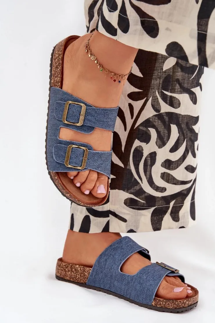 Klapki damskie na korkowej platformie z profilowaną eko zamszową wkładką to połączenie komfortu i modnego wyglądu. Dwa paski z regulowanymi klamrami zapewniają idealne dopasowanie, a ich nowoczesny fason wpisuje się w najnowsze trendy tego sezonu. Doskonałe do letnich stylizacji, świetnie komponują się z sukienkami, spódnicami czy spodniami, dodając każdej kreacji lekkości. Przy wyborze rozmiaru rosimy sugerować się tabelą rozmiarów.