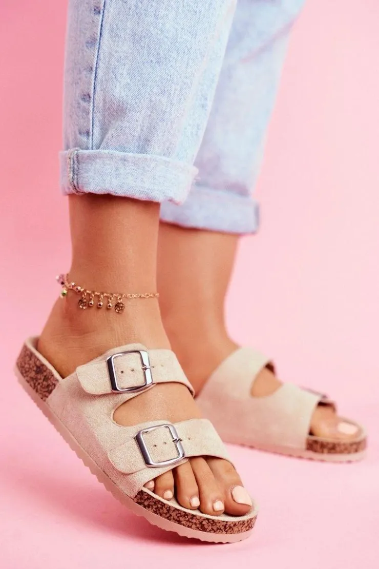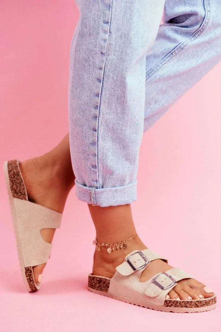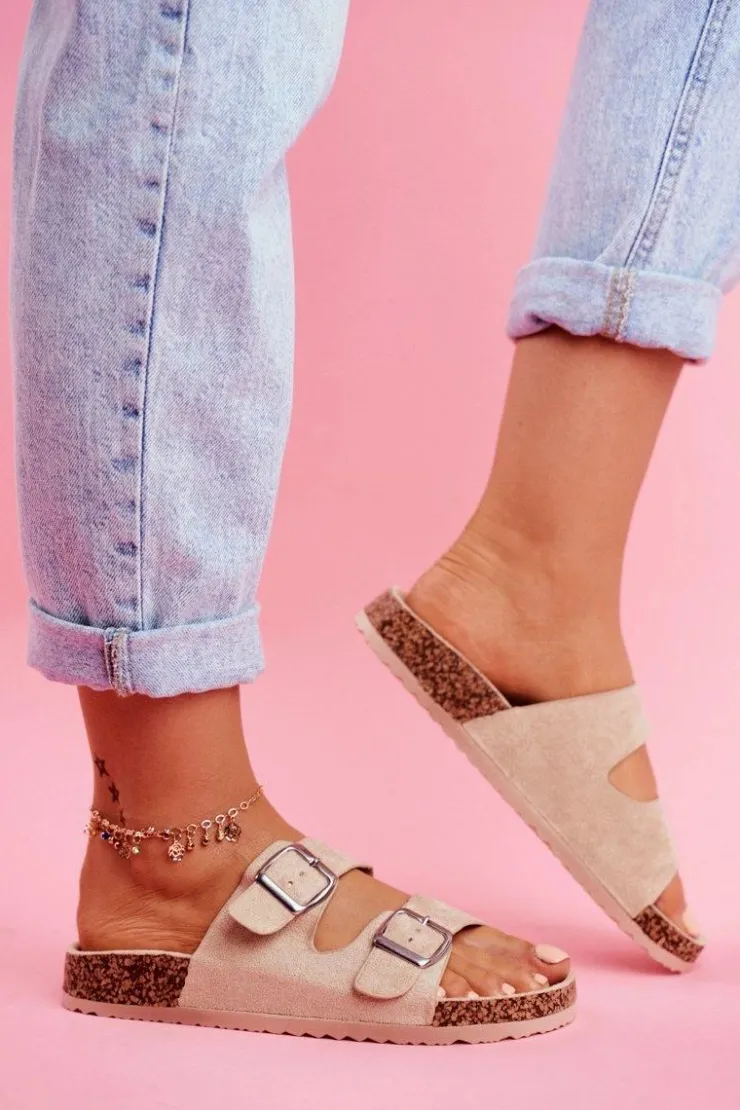 Damskie Evento Damskie Klapki Na Korku Z Klamrami Beżowe Si Senor