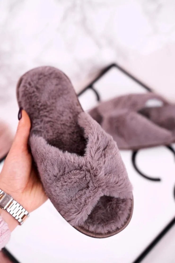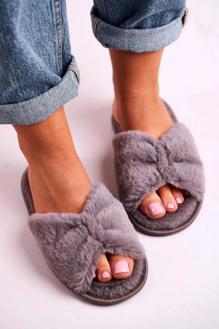 Damskie Evento Damskie Klapki Papcie Futrzane Szare Bow