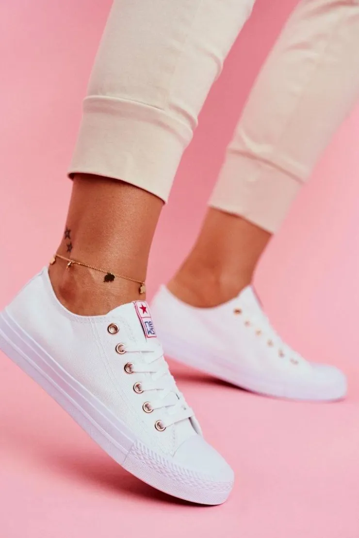 Klasyczne trampki damskie. Buty posiadają gumową podeszwę oraz miękką cholewkę. Ponadczasowy model, dostępny w wielu pięknych kolorach! Przy wyborze rozmiaru prosimy sugerować się tabelą rozmiarów.