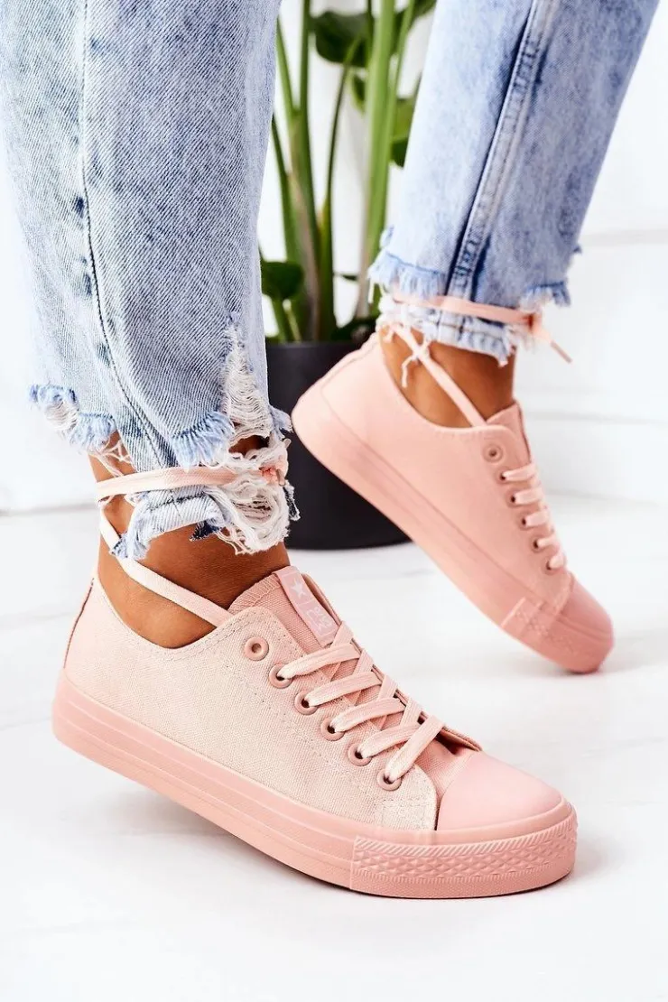 Klasyczne trampki damskie. Buty posiadają gumową podeszwę oraz miękką cholewkę. Ponadczasowy model, dostępny w wielu pięknych kolorach! Przy wyborze rozmiaru prosimy sugerować się tabelą rozmiarów.