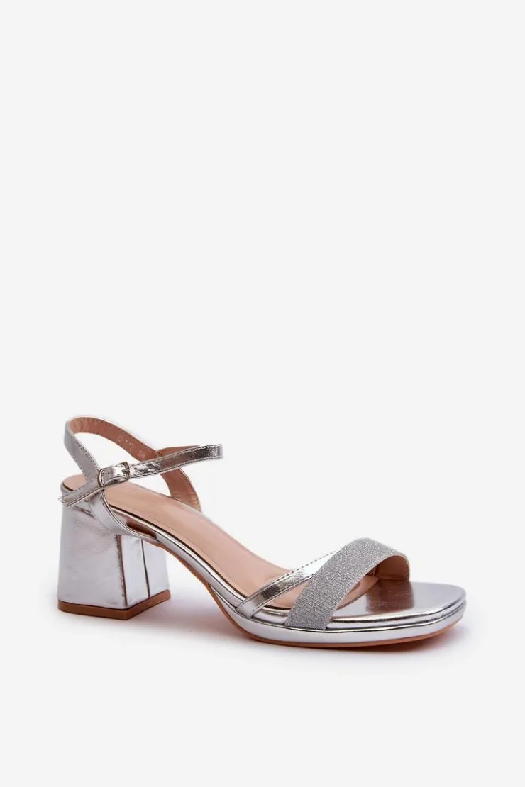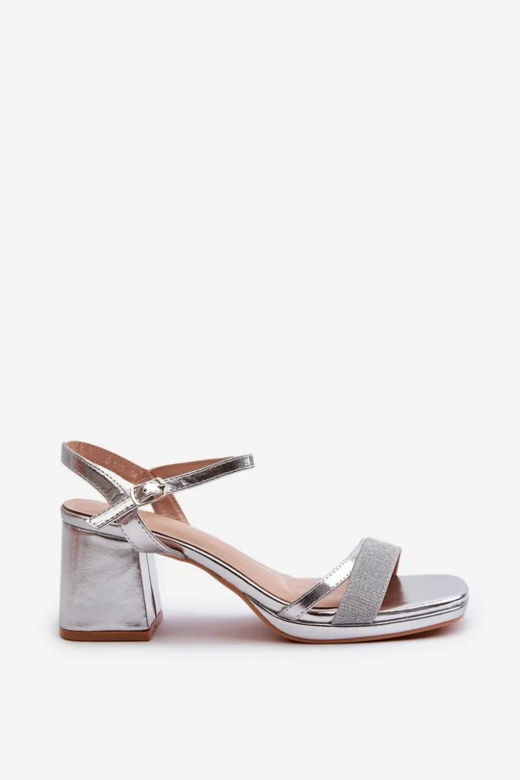 Sandały damskie wykonane z eko skóry. Osadzone na obcasie w postaci słupka. Zapinane na regulowany pasek ze sprzączką, gwarantują idealne dopasowanie do stopy. Z przodu dwa paseczki, dodatkowo jeden obszyty jest błyszczącą nicią, dodając im delikatnego blasku. Te sandały będą doskonałym uzupełnieniem każdej letniej stylizacji! Przy wyborze rozmiaru prosimy sugerować się tabelą rozmiarów.
