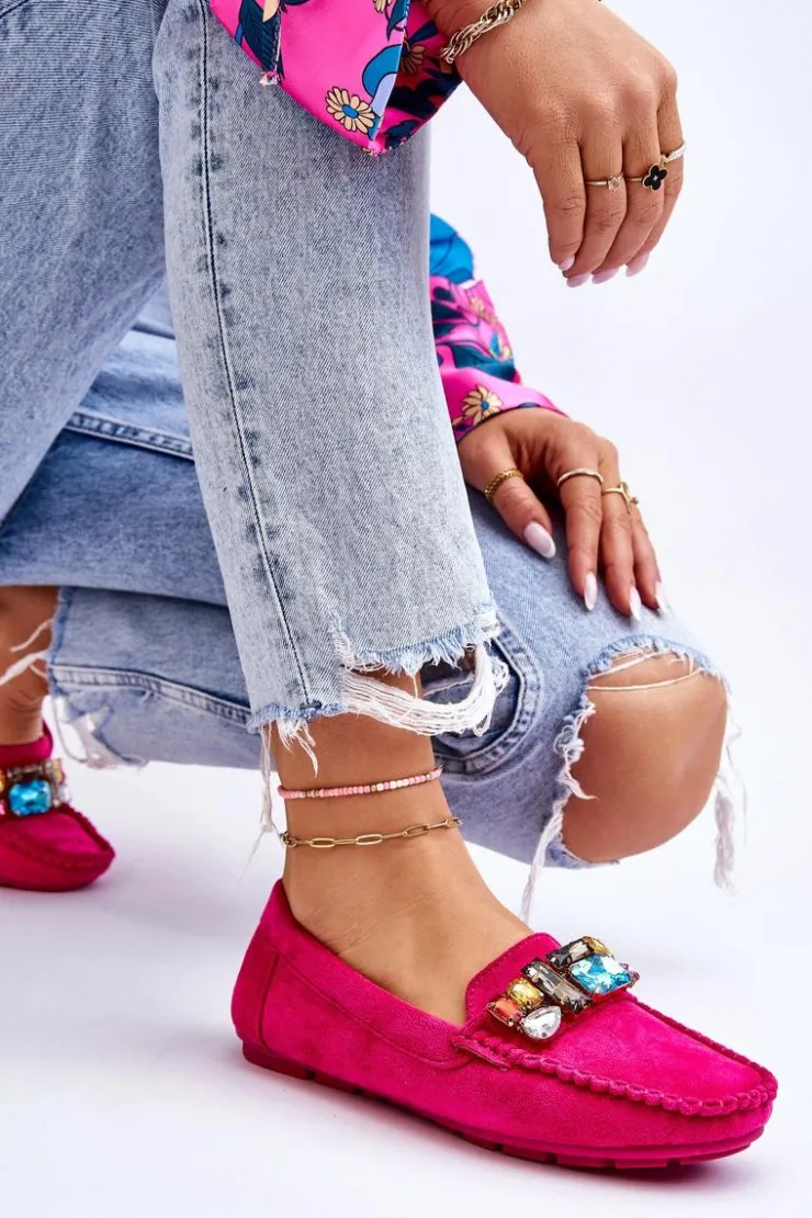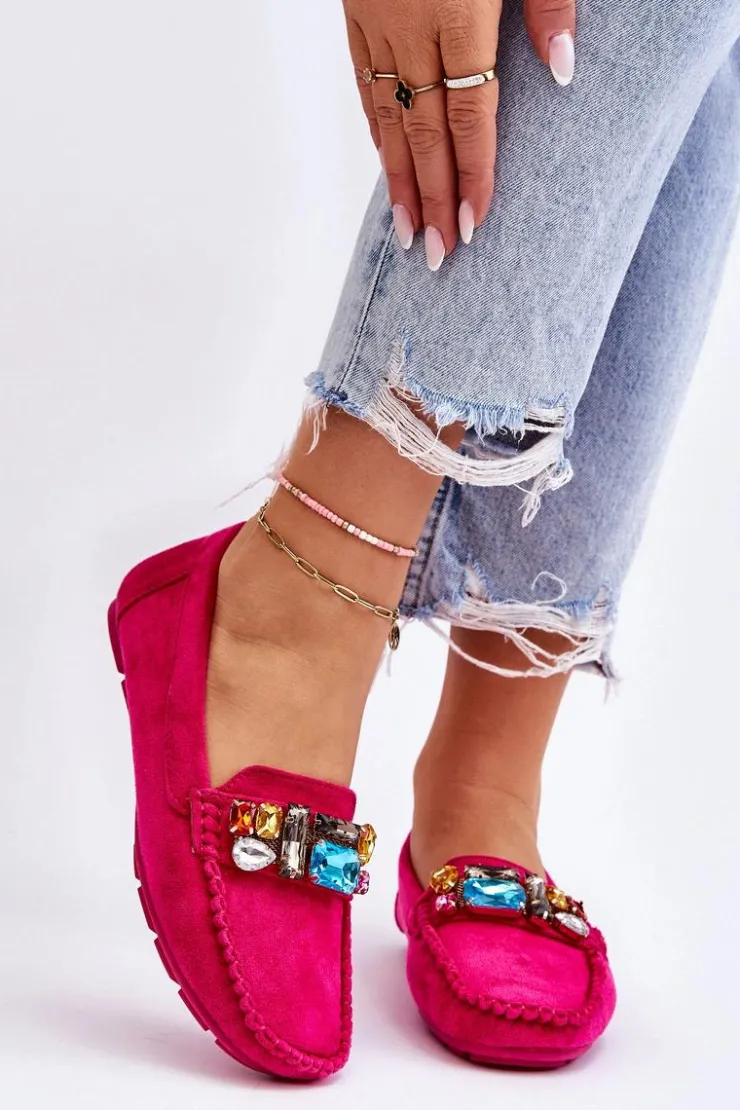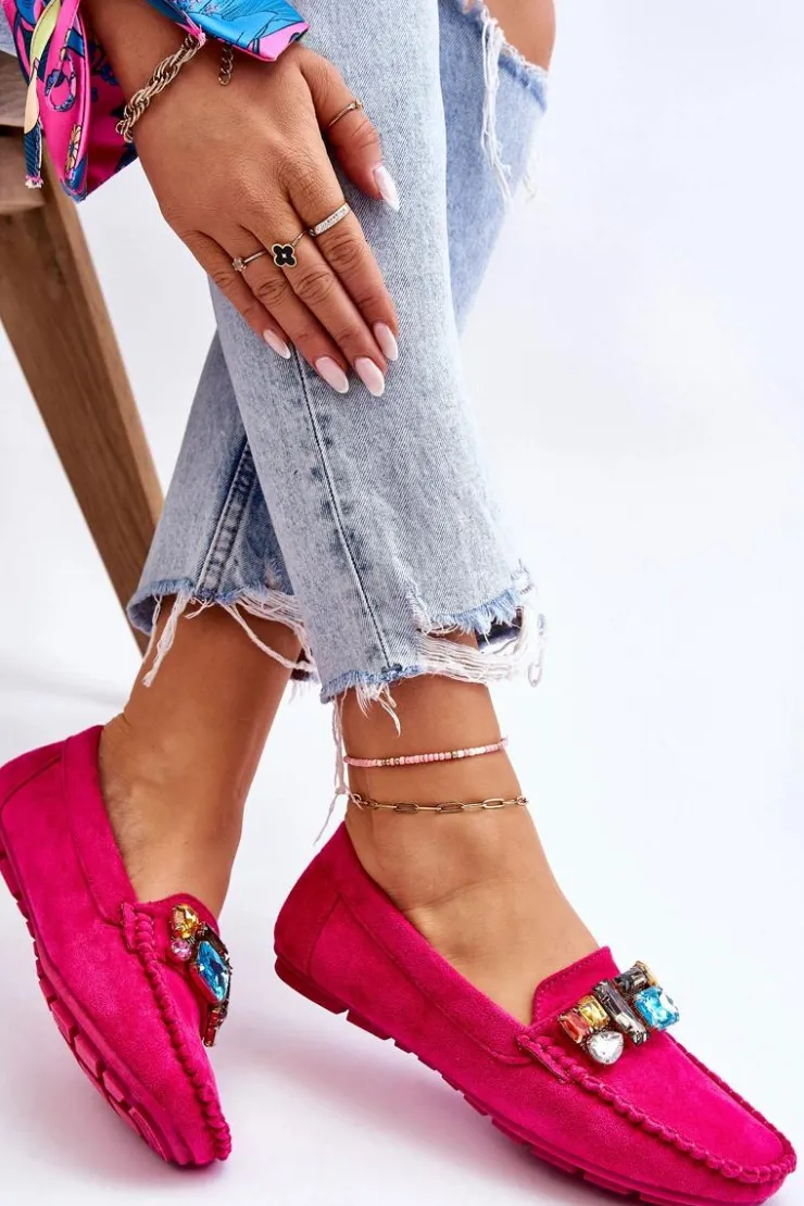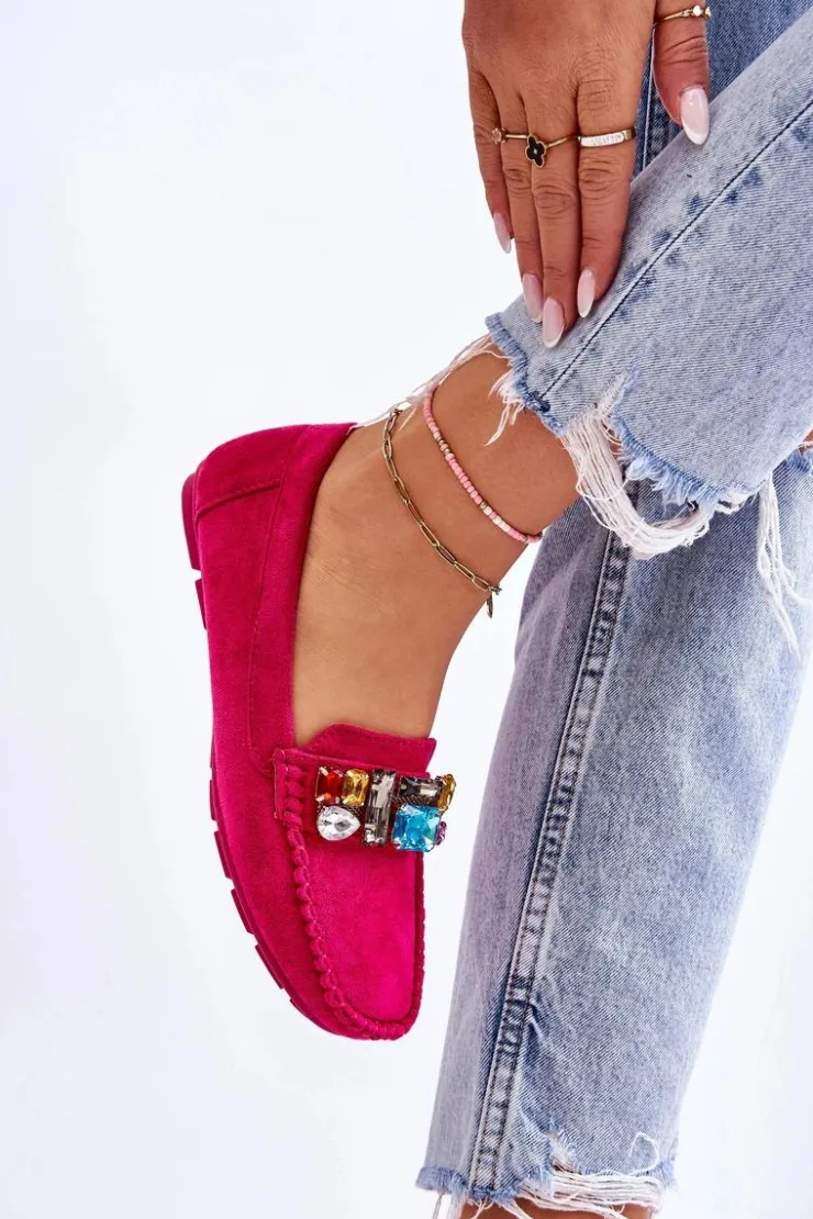 Damskie Evento Damskie Zamszowe Mokasyny Z Kryształkami Fuksja Lucille