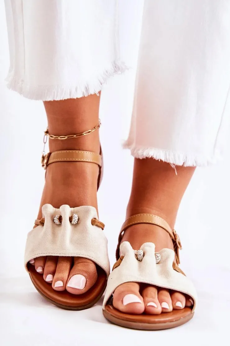 Wyjątkowe sandały damskie marki wykonane są z eko zamszu z dbałością o detale. Wkładka ze eko skóry oraz antypoślizgowa podeszwa zadbają o Twoją wygodę! Koniecznie sprawdź całą naszą kolekcję sandałek! Przy wyborze rozmiaru prosimy kierować się tabelą rozmiarów.