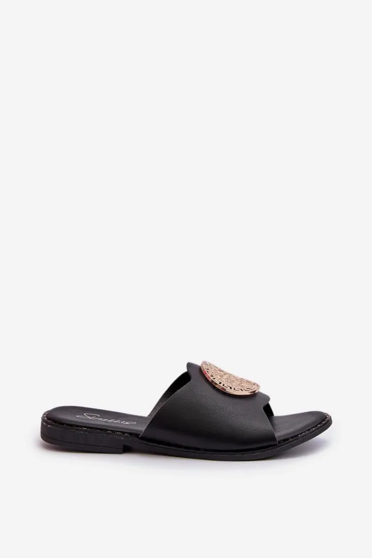 Eleganckie damskie klapki wykonane z eko skóry. Osadzone na płaskim obcasie, zapewniają wygodę i stabilność. Uroku dodaje ozdoba, która sprawia, że klapki są idealnym wyborem na letnie dni, zarówno na co dzień, jak i na bardziej formalne okazje. Przy wyborze rozmiaru prosimy sugerować się tabelą rozmiarów.