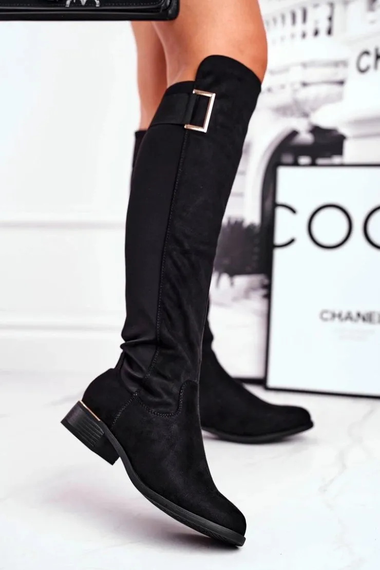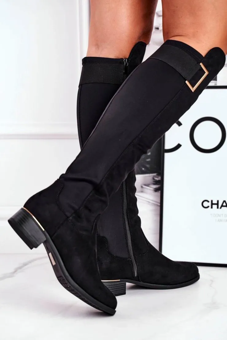 Damskie Evento Kozaki Damskie Do Kolana Zamsz / Lycra Czarne Natasha