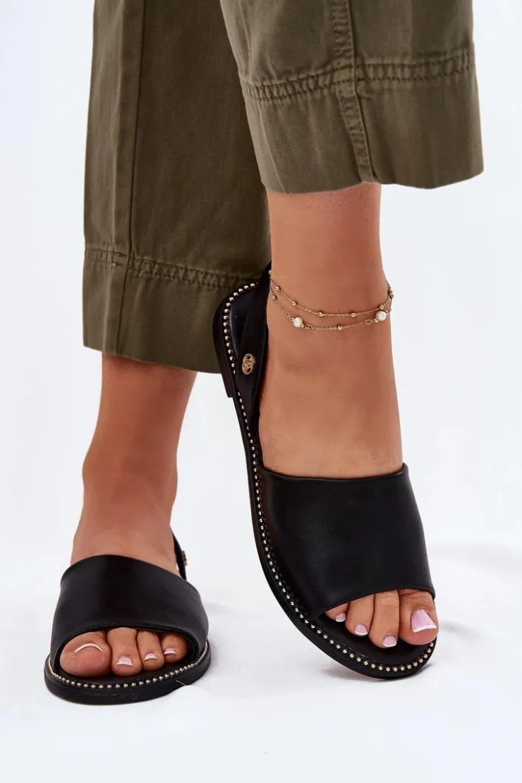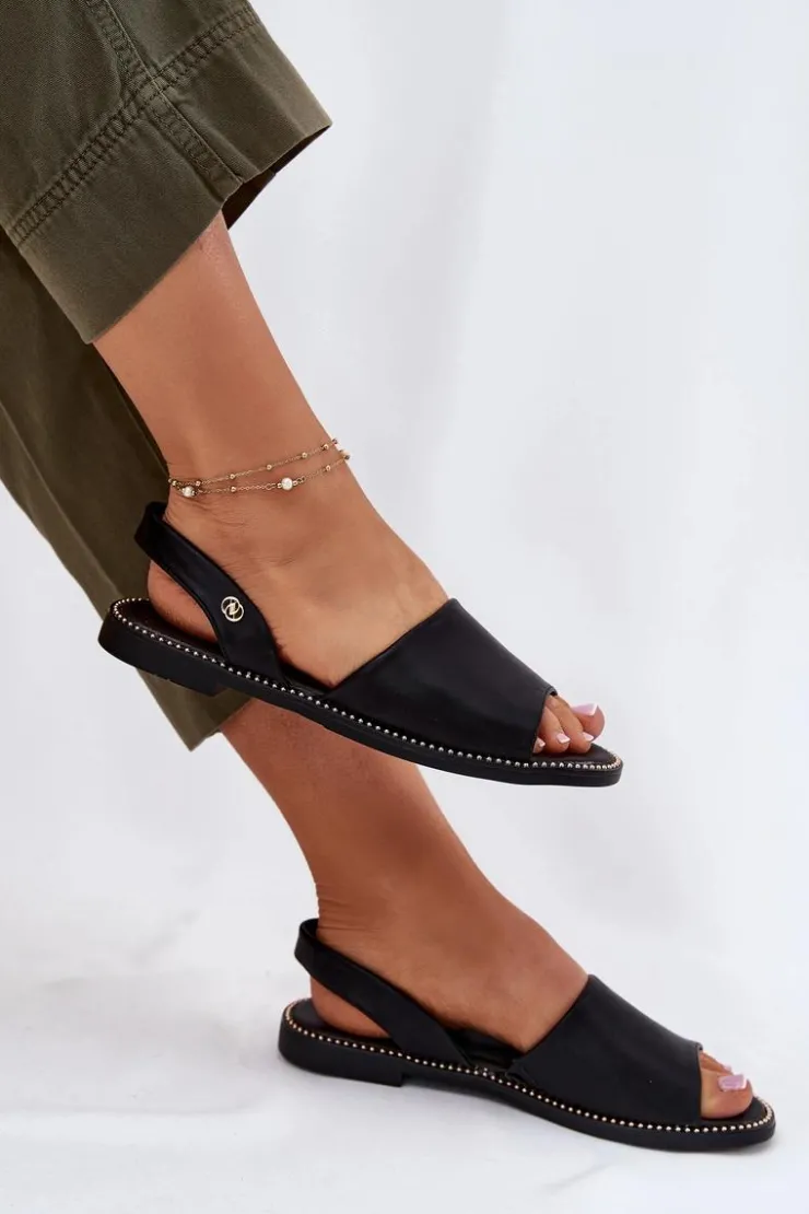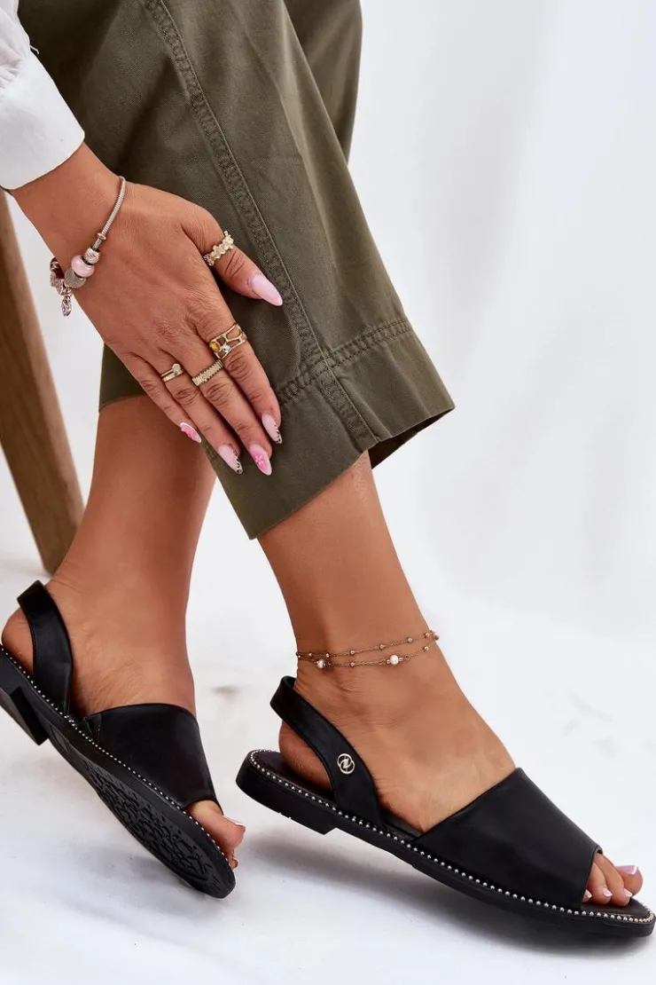 Sandały damskie z eko skóry to elegancka propozycja na ciepłe dni. Osadzone na płaskim obcasie, zapewniają wygodę i komfort przez cały dzień. Na pasku z tyłu znajduje się subtelny ozdobny detal, który dodaje uroku. Idealne do sukienek, spódnic oraz spodni materiałowych, stanowią doskonałe uzupełnienie letnich outfitów. Przy wyborze rozmiaru prosimy kierować się tabelą rozmiarów.